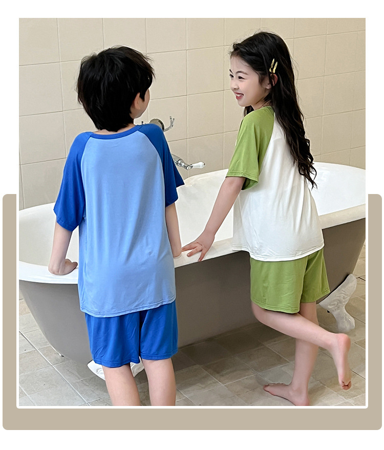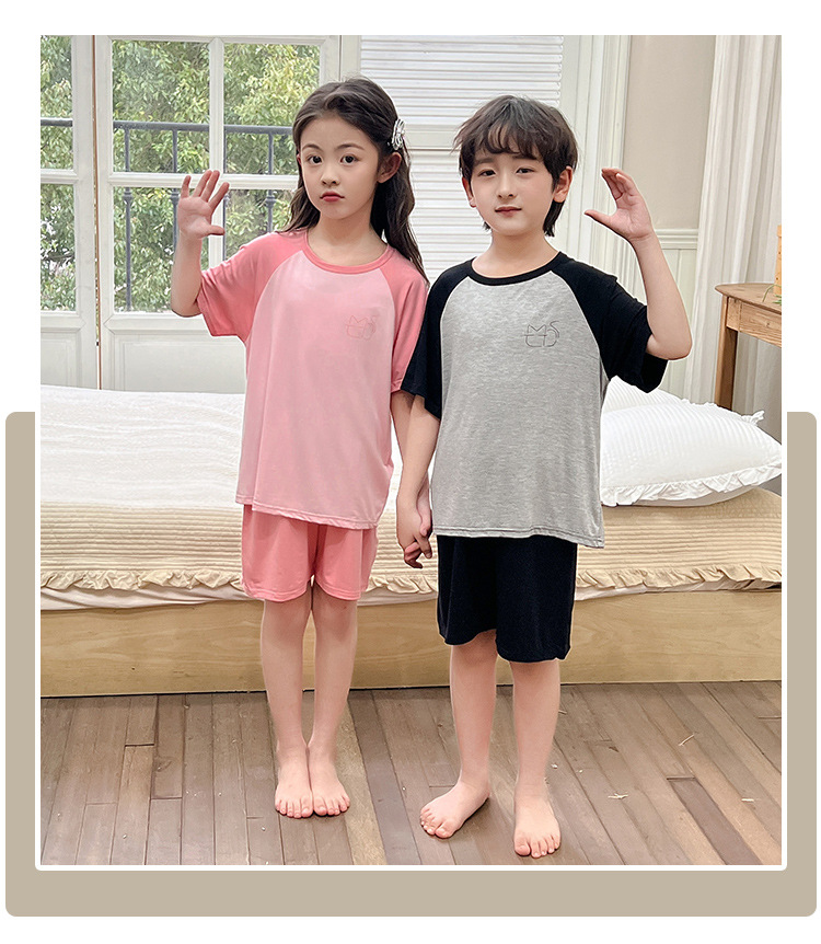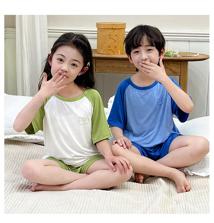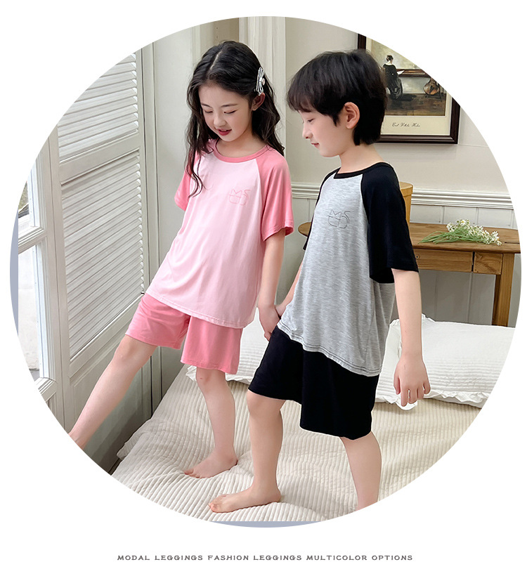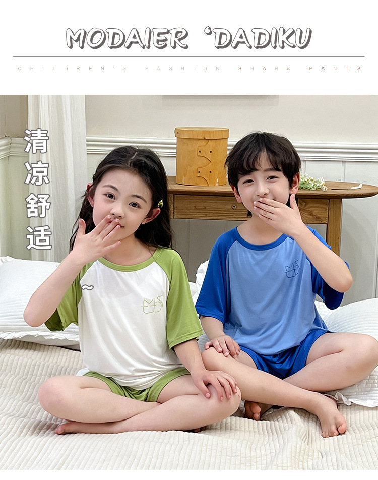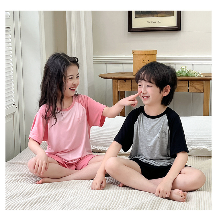 아동복 모달 반팔 반바지 여아 여름 얇은 잠옷 세트 남아 배색 투피스 세트