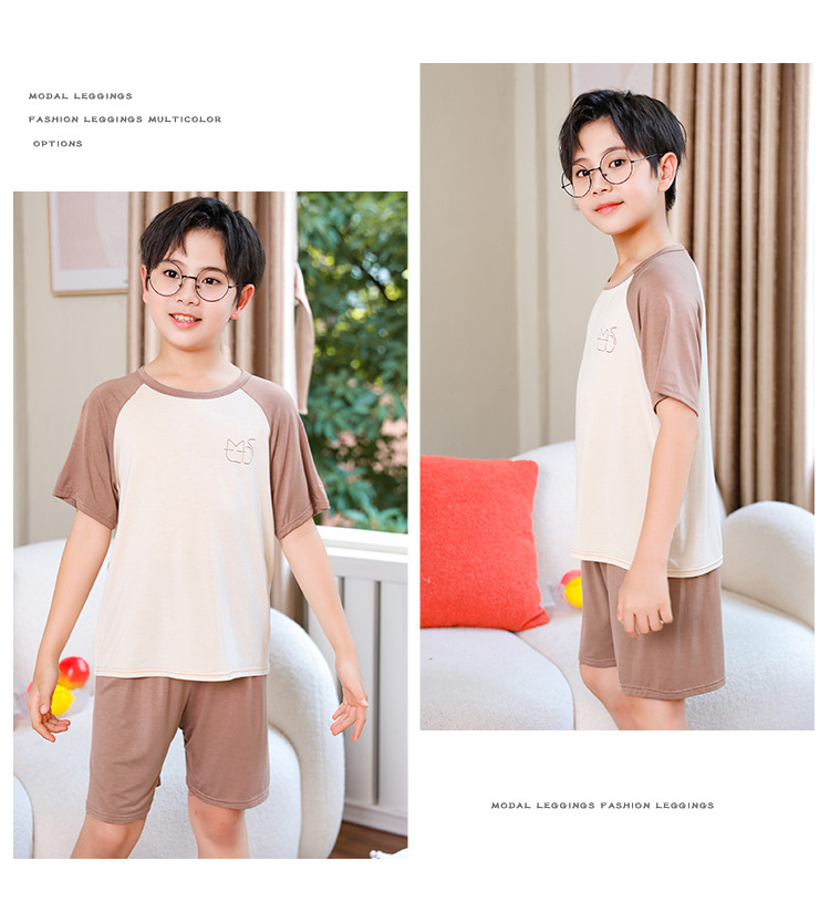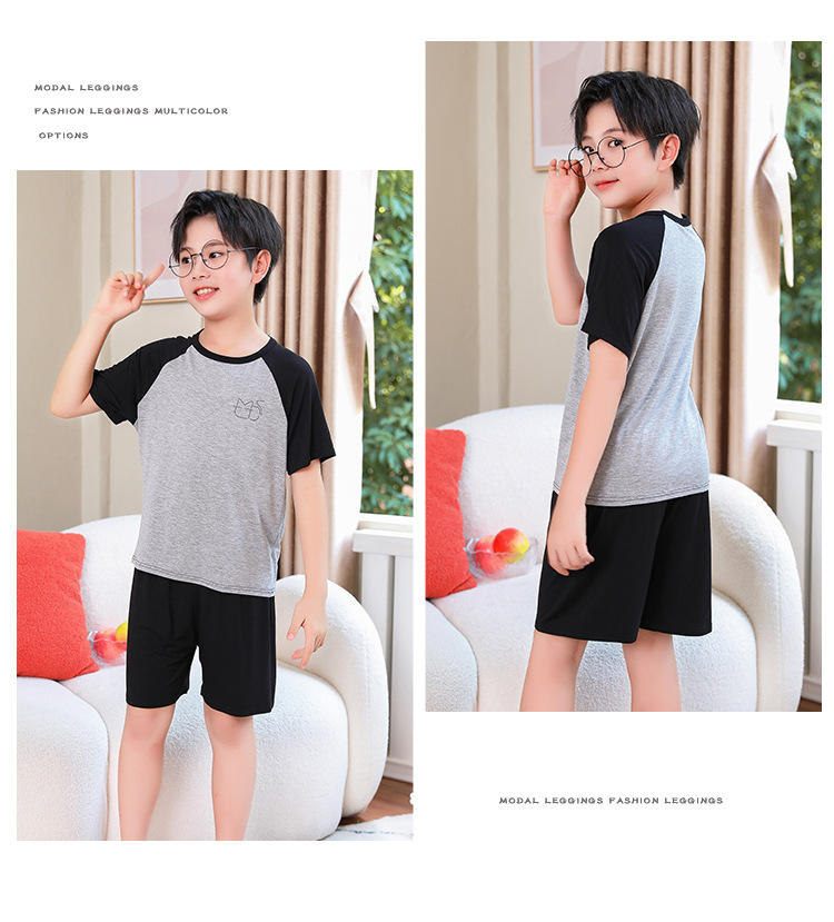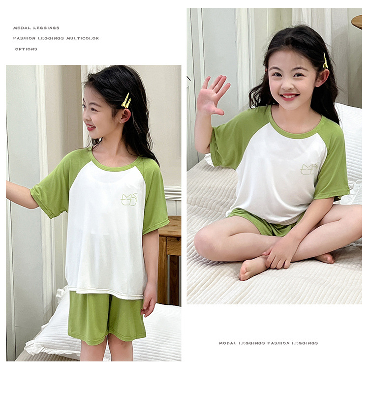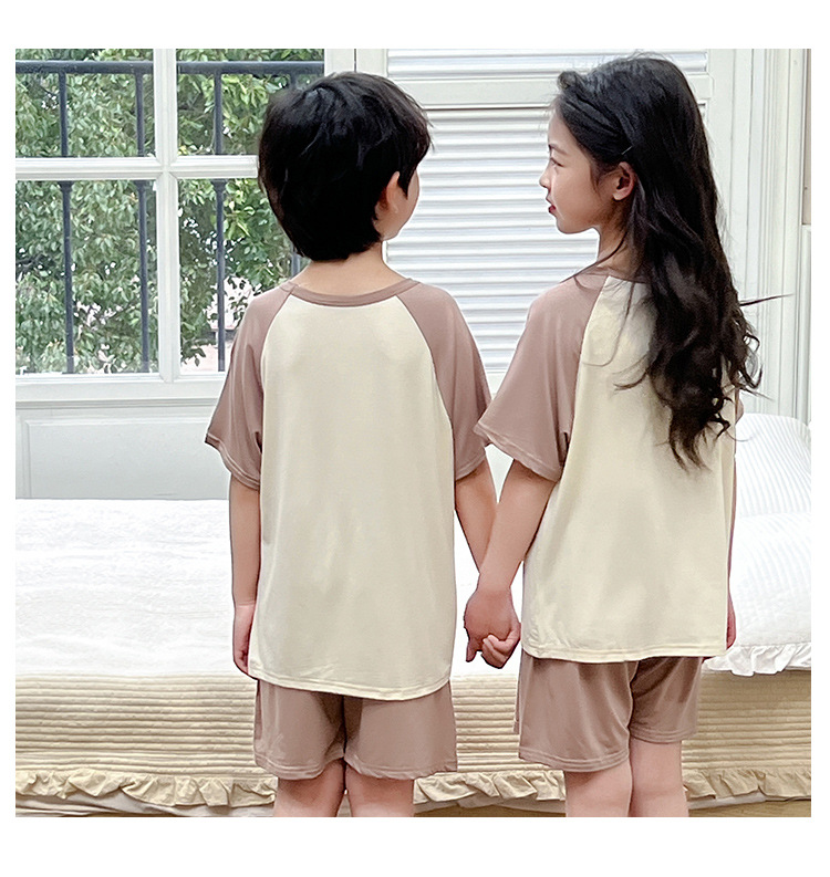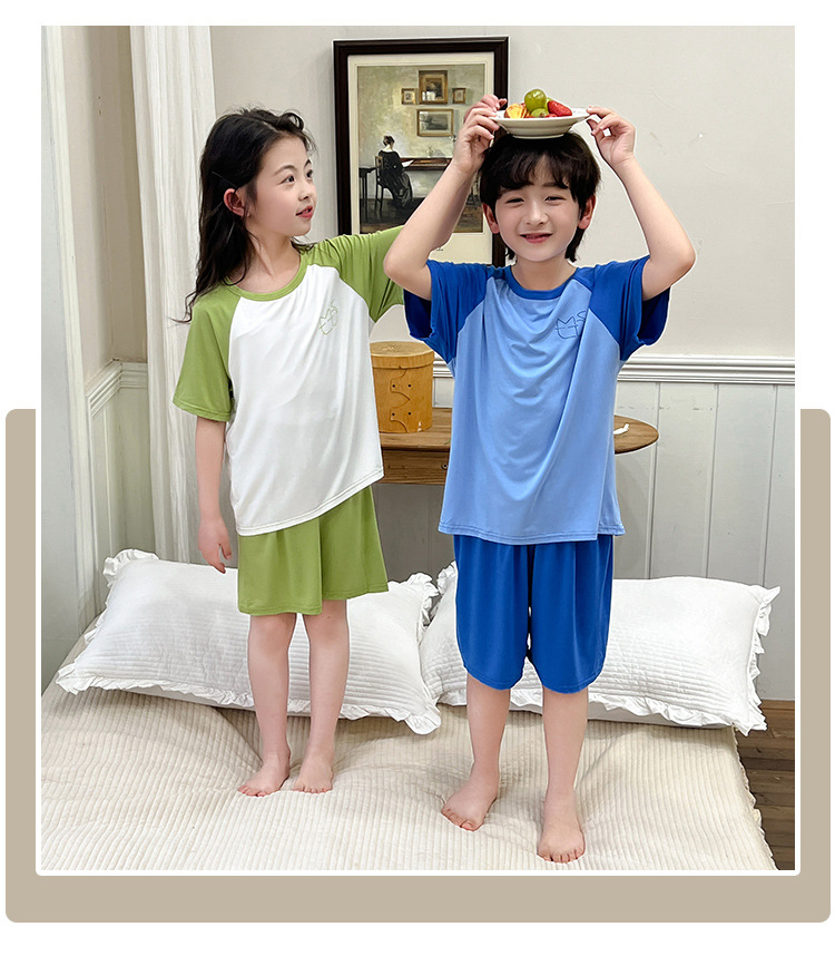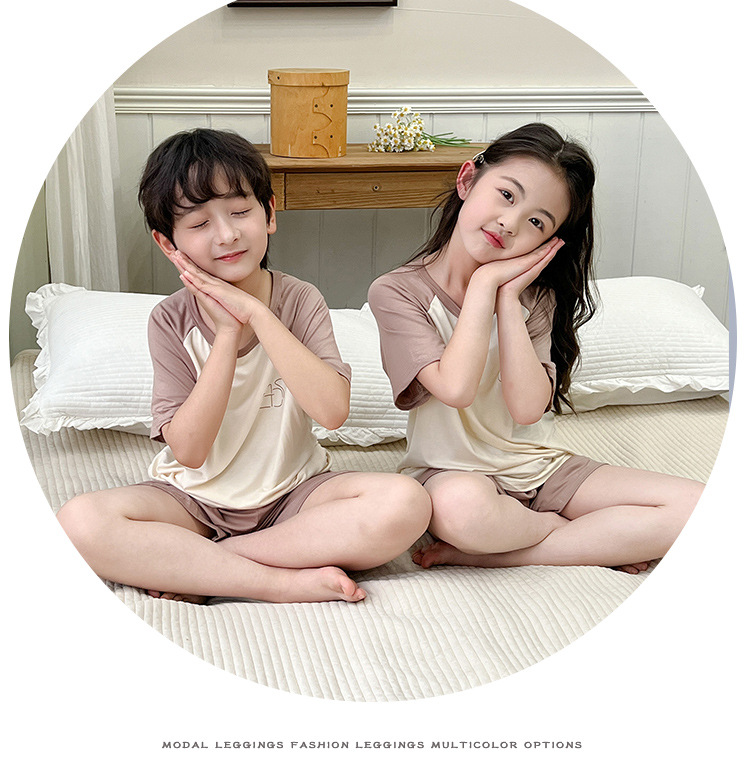아동복 모달 반팔 반바지 여아 여름 얇은 잠옷 세트 남아 배색 투피스 세트