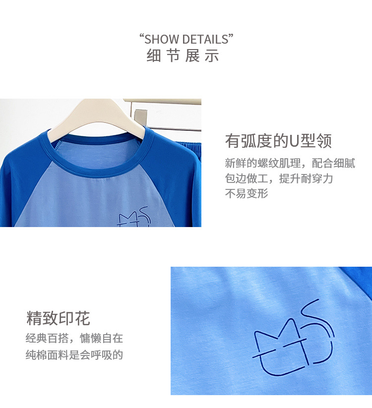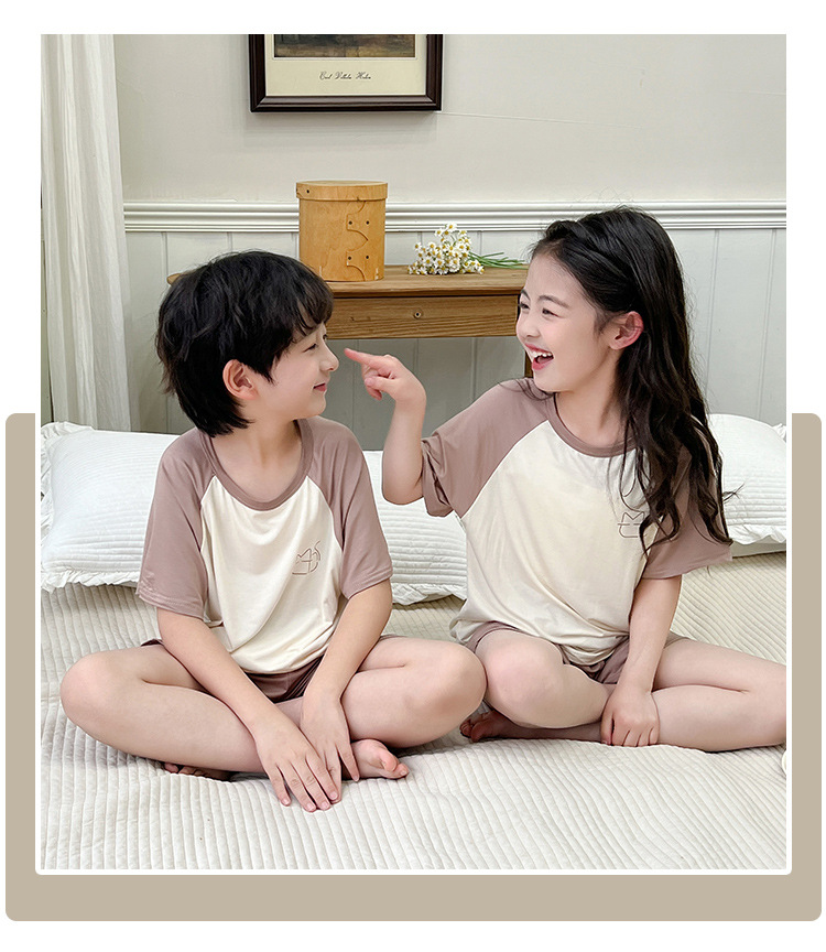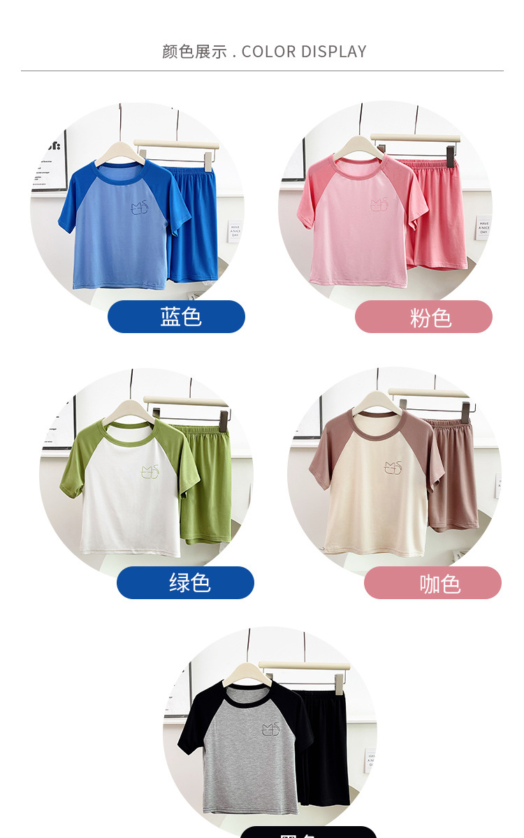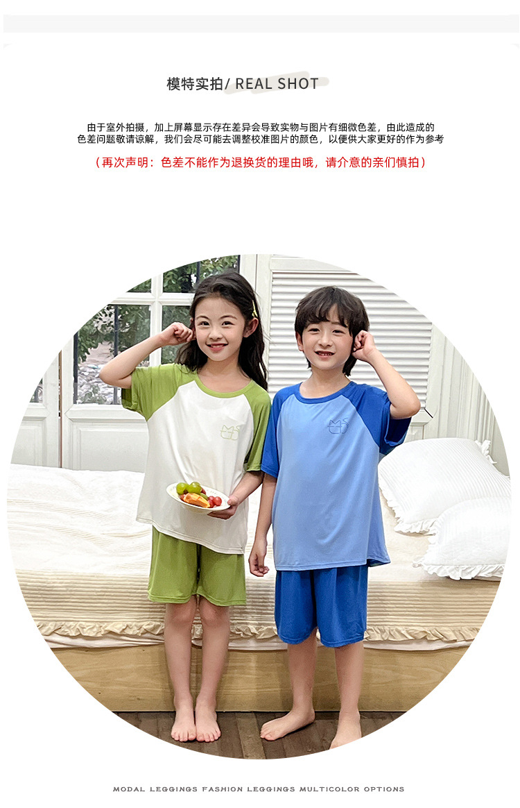 아동복 모달 반팔 반바지 여아 여름 얇은 잠옷 세트 남아 배색 투피스 세트스토어 가기