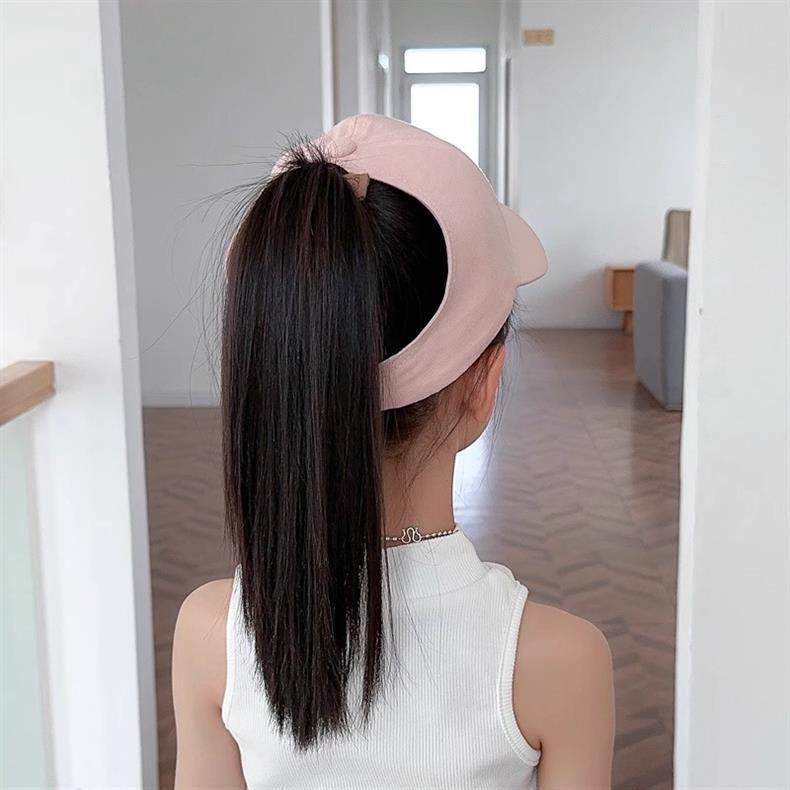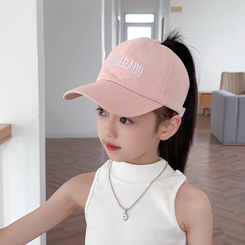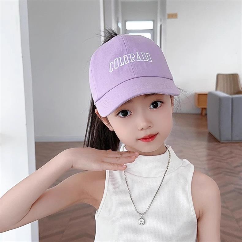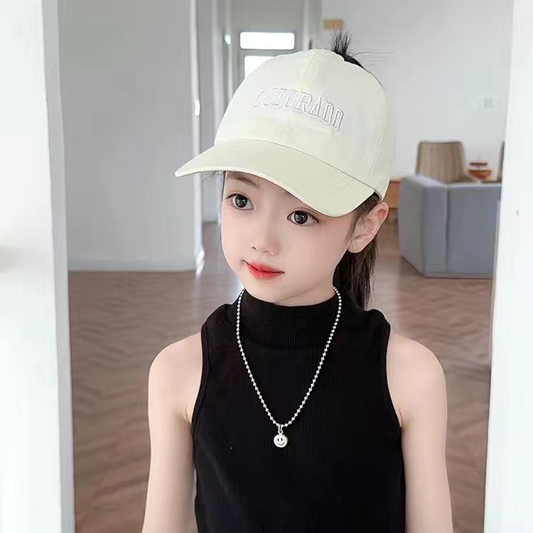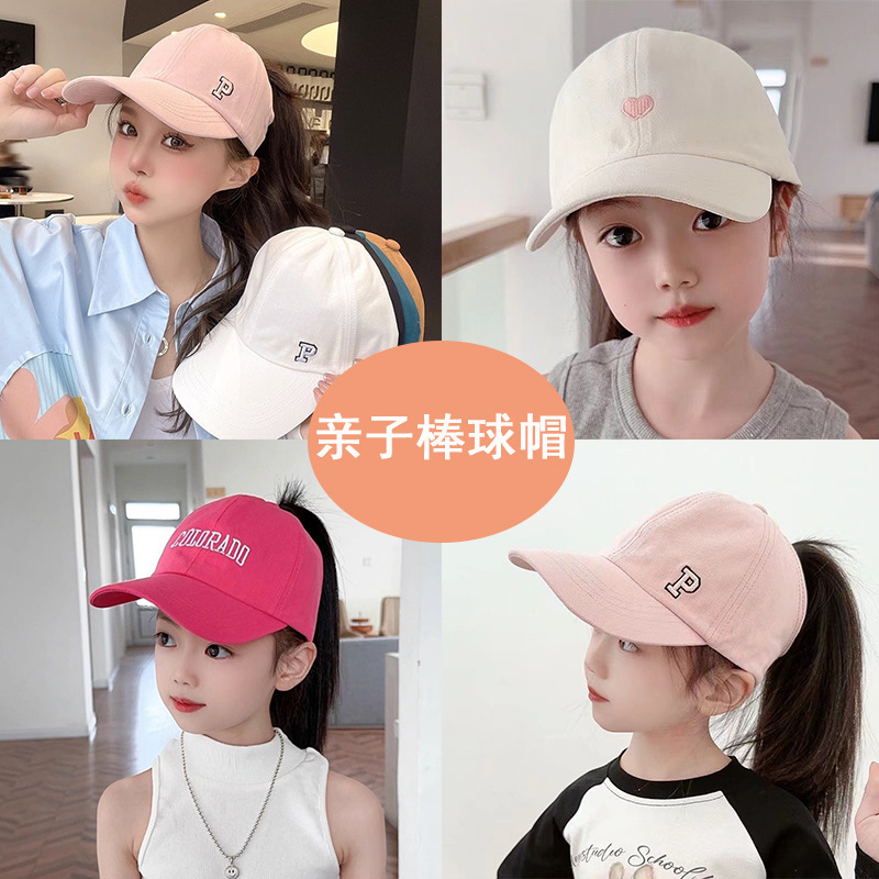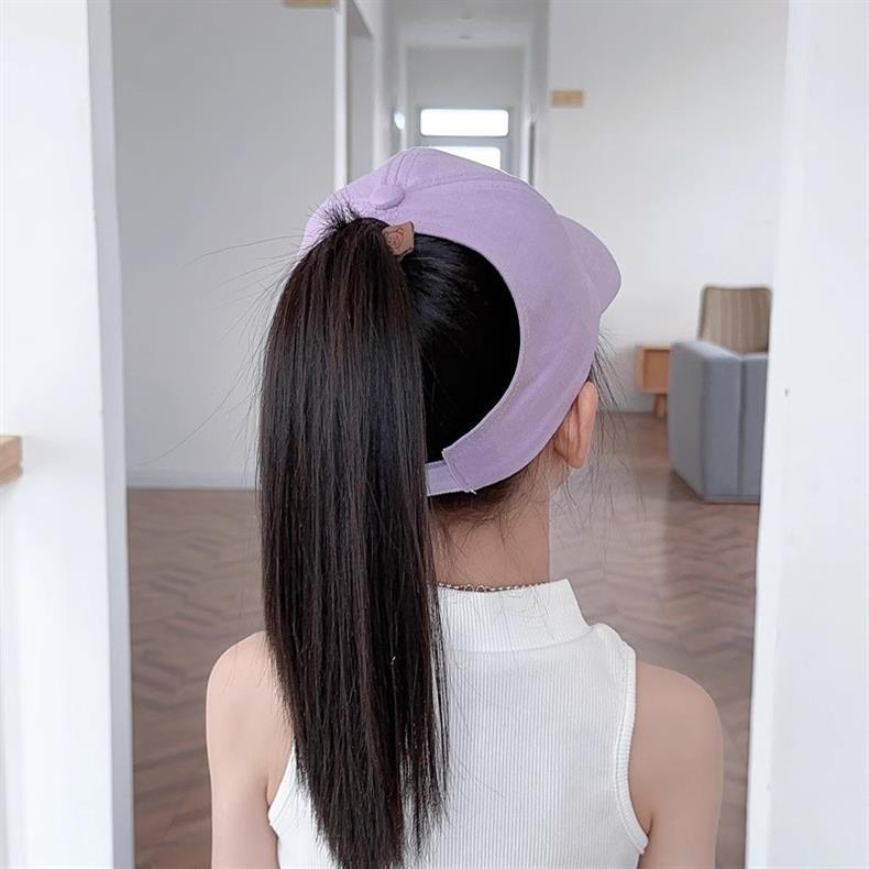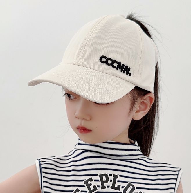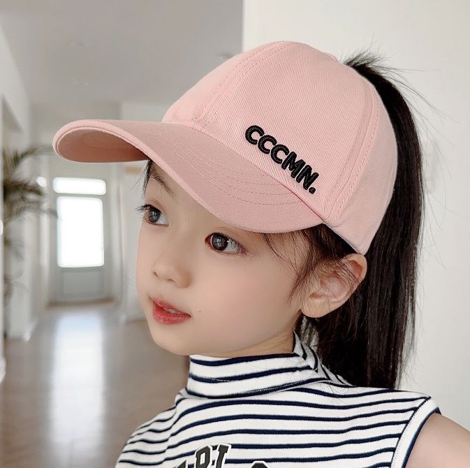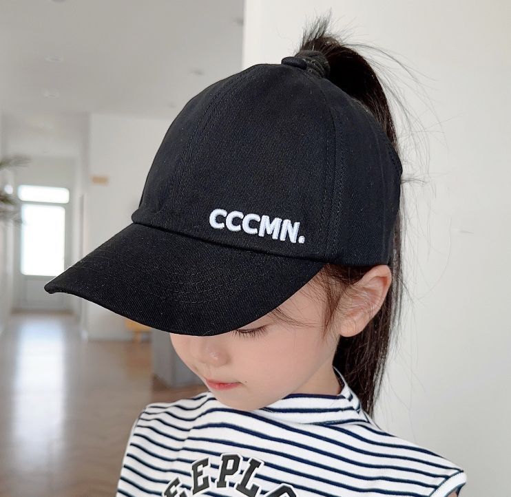 아이들은 포니 테일 모자를 착용 할 수 있습니다 봄과 가을 모자 소녀 자수 서양식 야구 모자 소녀 간단한 올 매치 차양
