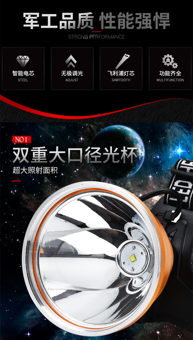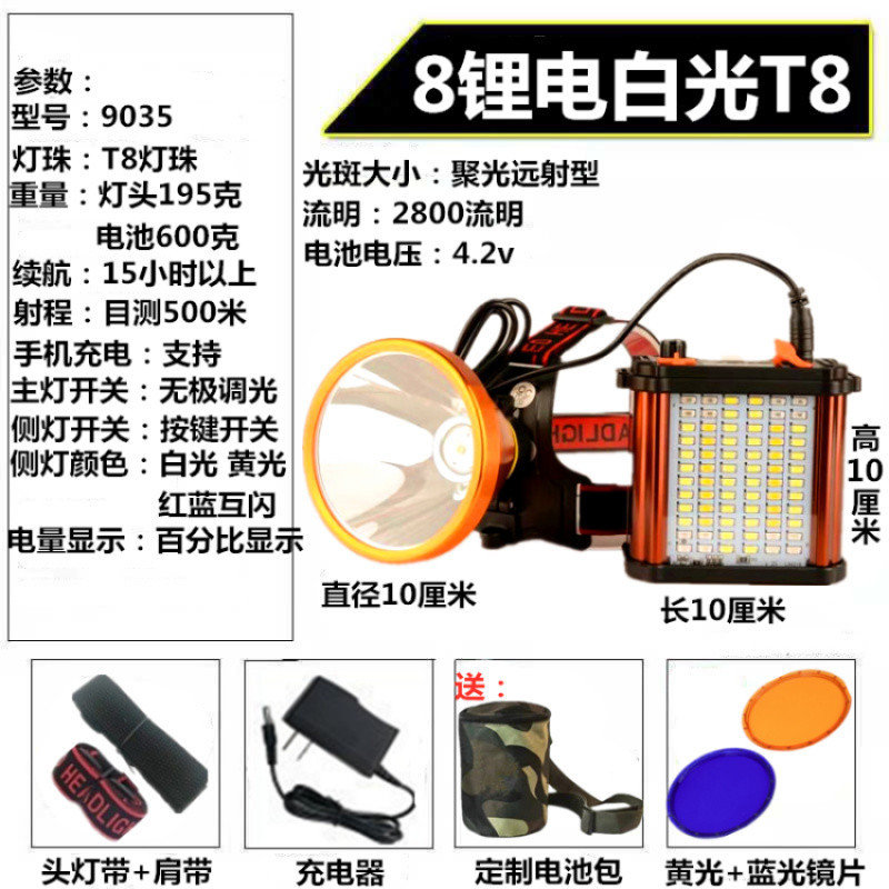 헤드 램프 강한 빛 충전 10 리튬 배터리 슈퍼 밝은 대형 스팟 야외 헤드셋 분할 leb스토어 가기