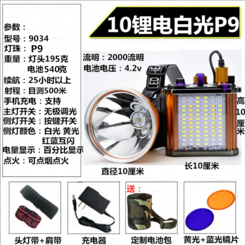 헤드 램프 강한 빛 충전 10 리튬 배터리 슈퍼 밝은 대형 스팟 야외 헤드셋 분할 leb