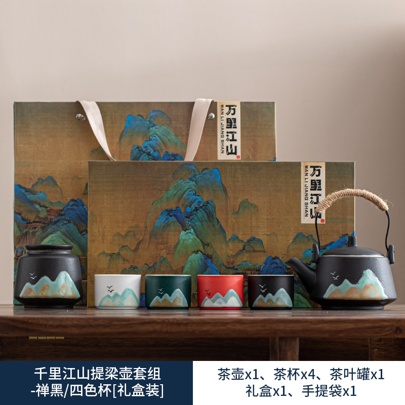 2025년 새로운 국가 트렌드 문화 및 창의적 Qianli Jiangshan 차 세트 차 컵 세트는 주도 및 장로를 위한 듀안 축제를 위한 실용적인 선물입니다.