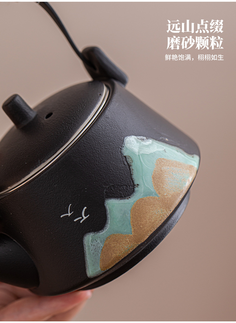• 위안산 리프트 주전자 6종 세트 - 티앙 젠 블랙 4색 컵 [선물 상자]