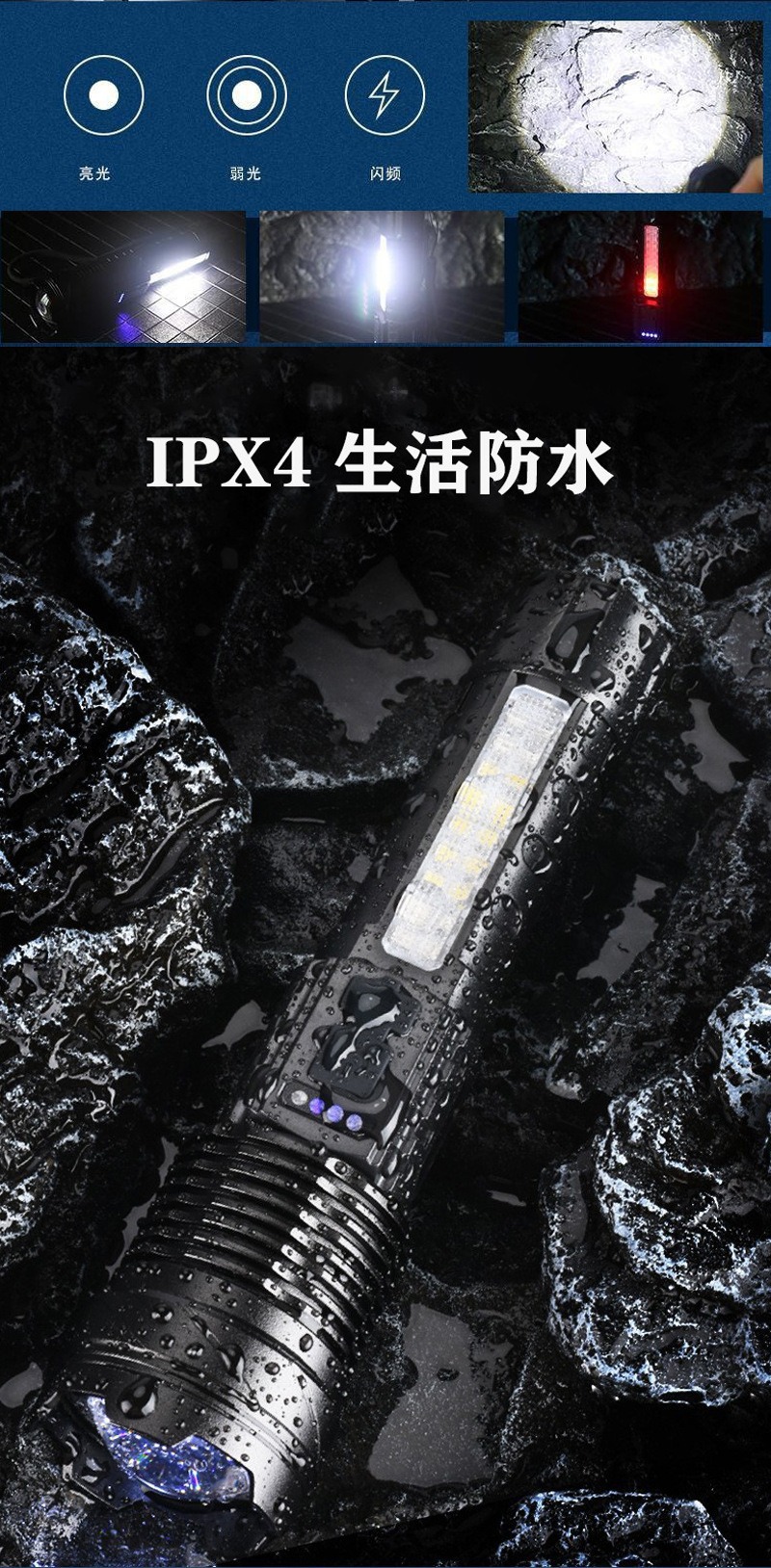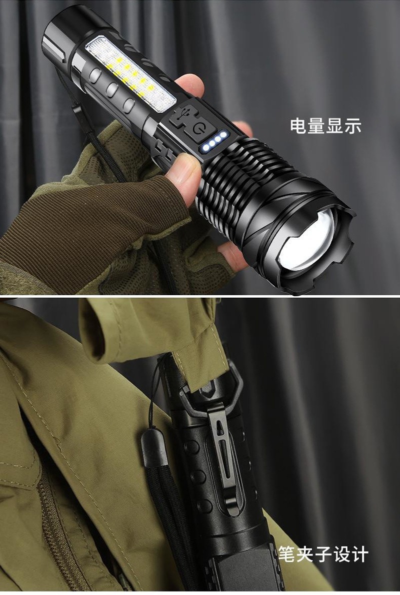 COB 경고 측면 작업 조명을 기다리는 강력한 손전등 빠른 typ-c 충전 야외 조명 흰색 레이저 손전등