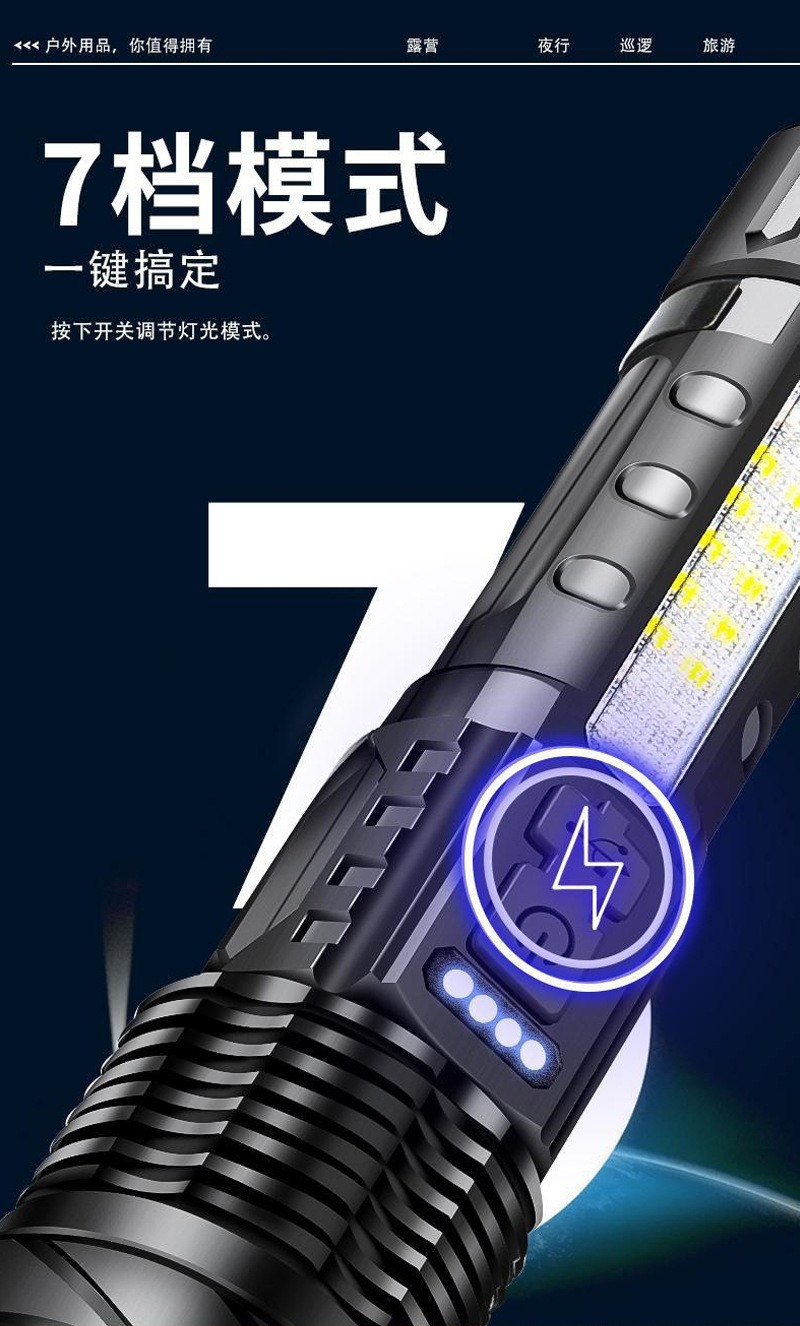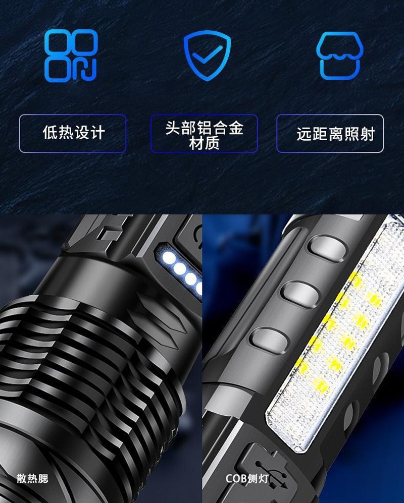 COB 경고 측면 작업 조명을 기다리는 강력한 손전등 빠른 typ-c 충전 야외 조명 흰색 레이저 손전등스토어 가기