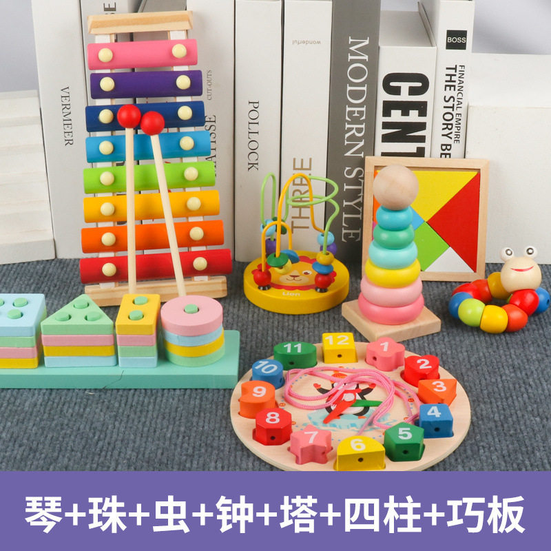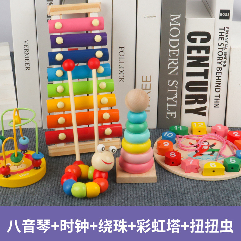 아기 어린이 계몽주의 퍼즐 악기 나무 톤 타악기 1-2-3 주 4 세 남성과 여성스토어 가기