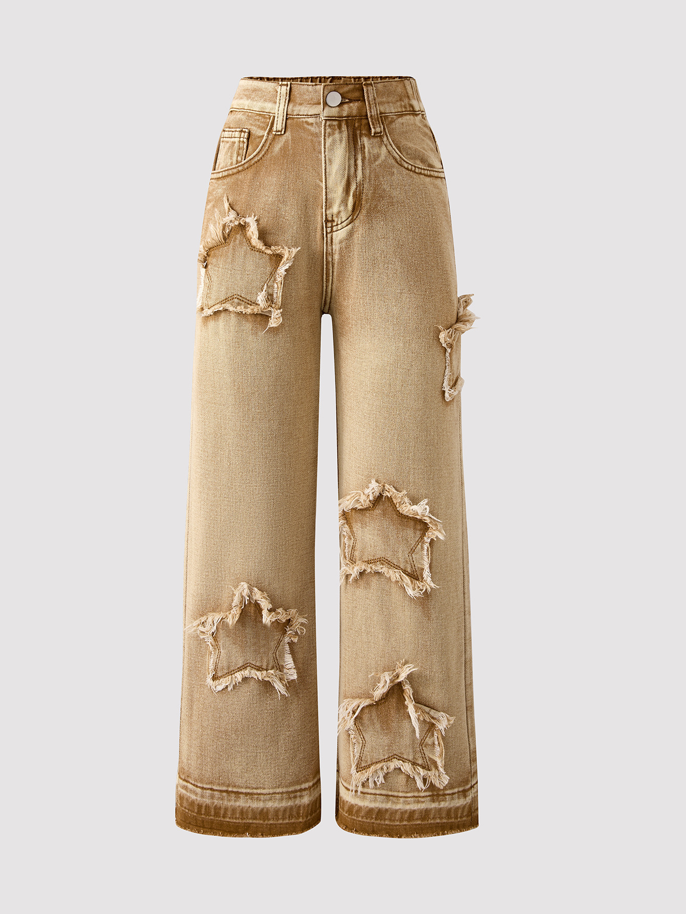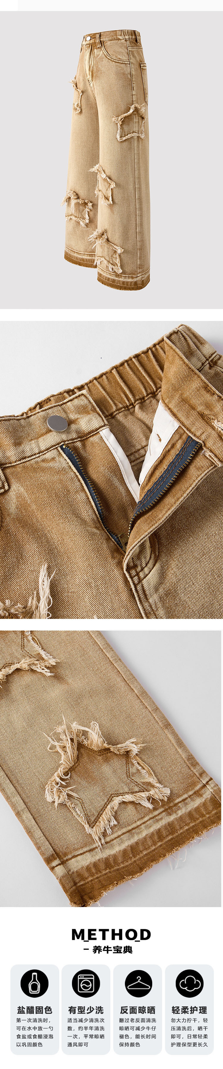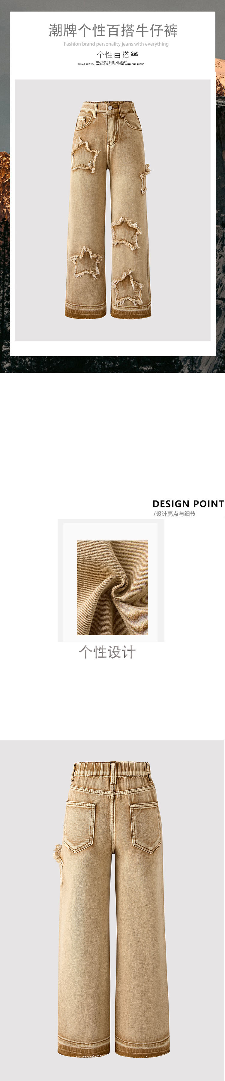 유럽 및 미국 아마존 청소년 소녀들을 위한 별 장식 밴딩 와이드 레그 청바지, 한국 스타일 캐주얼 만능템스토어 가기