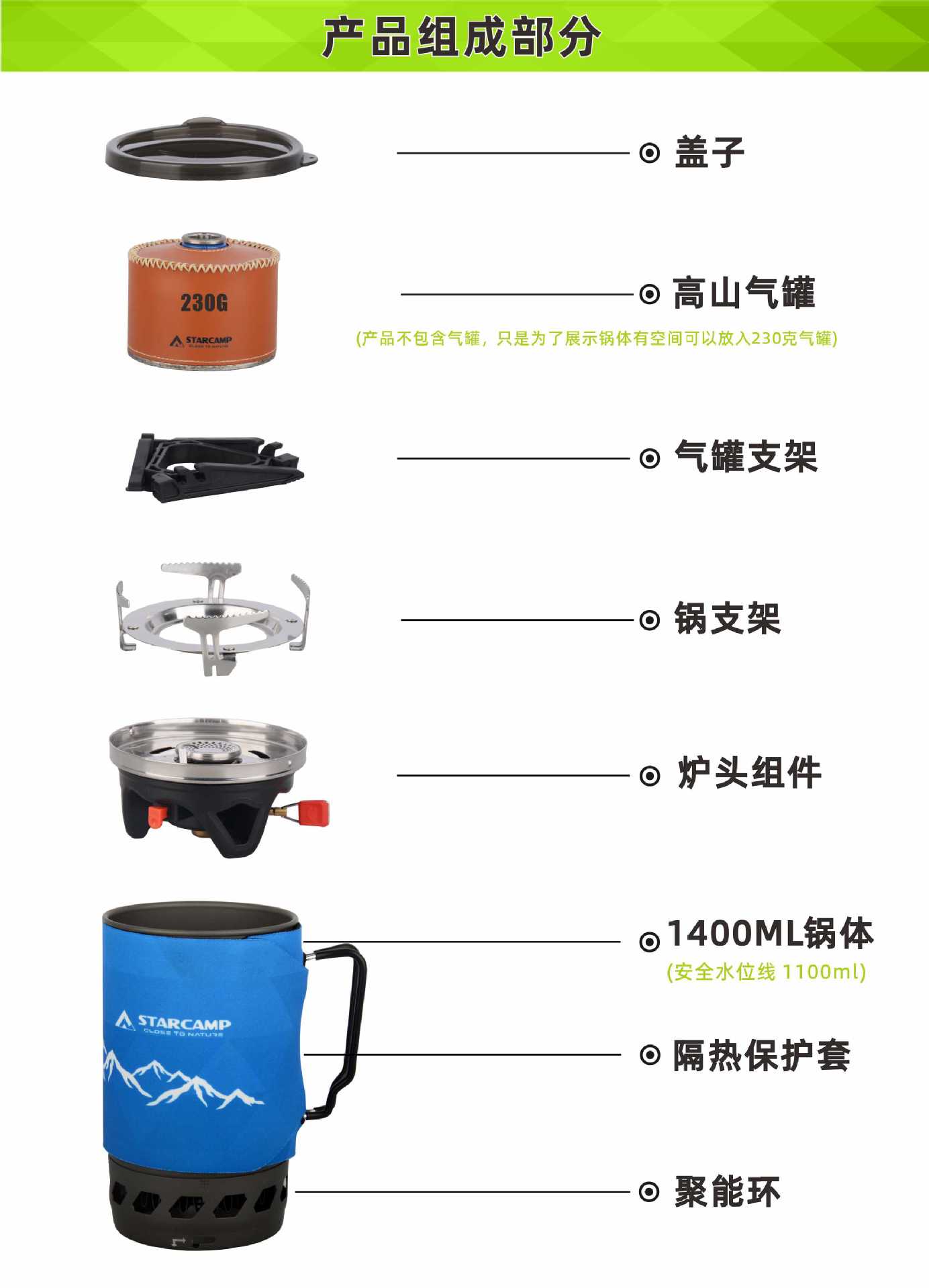 STARCAMP 1400ml 캠핑 하이킹 야외 물 끓이는 스토브 피크닉 스토브 휴대용 가스 스토브