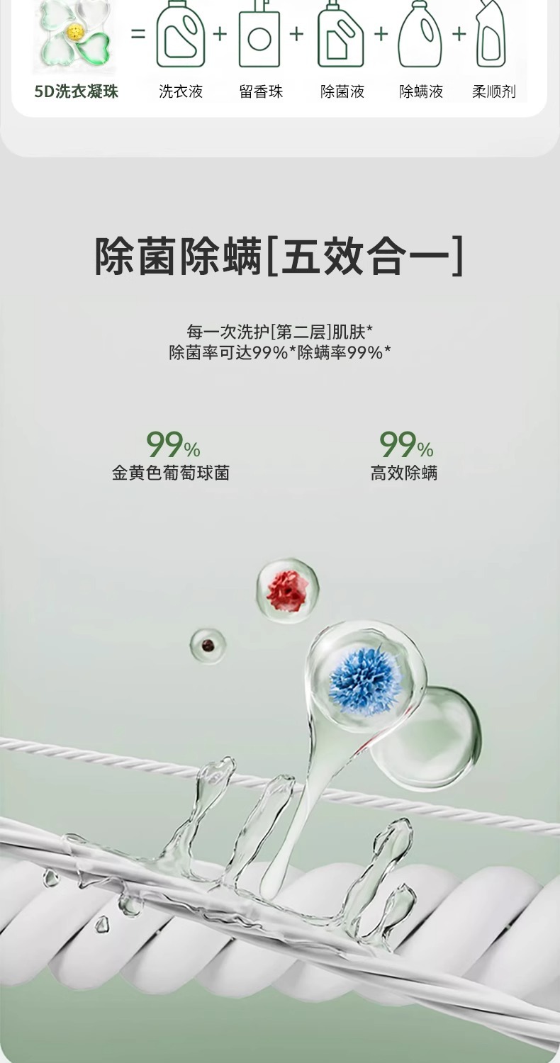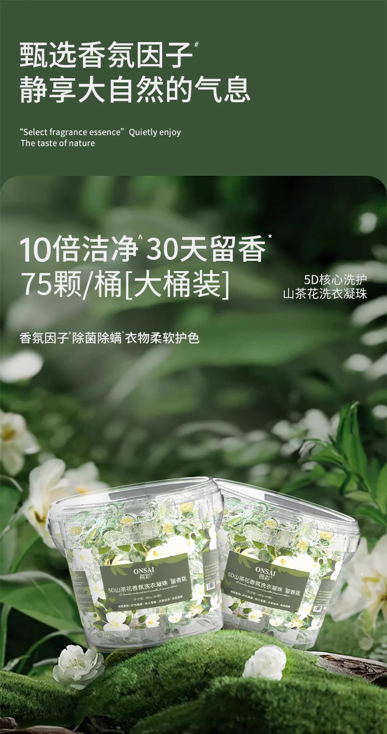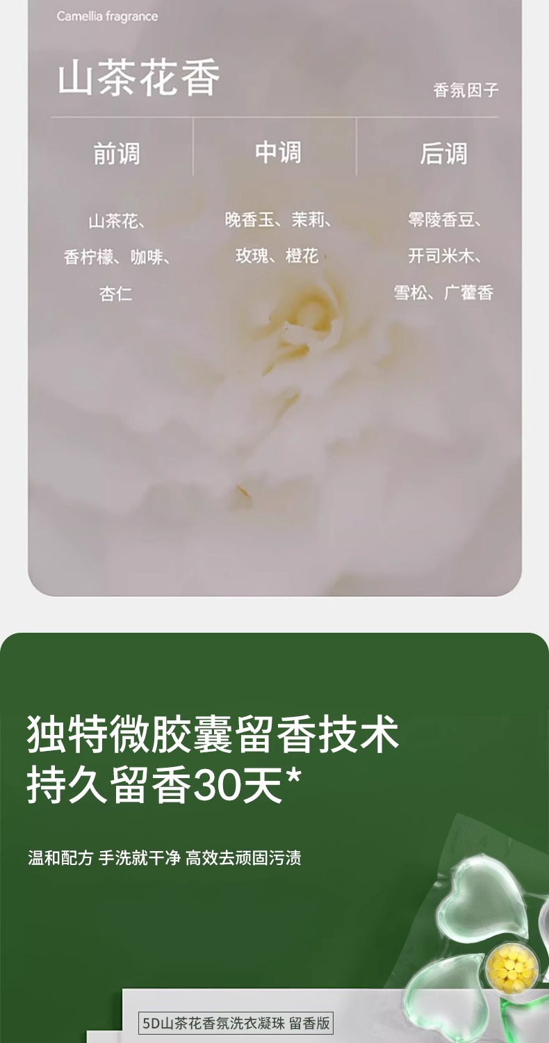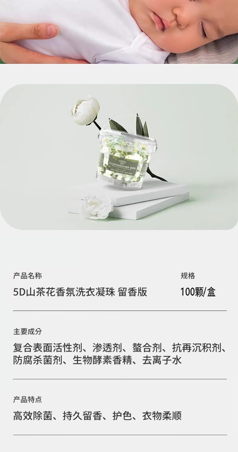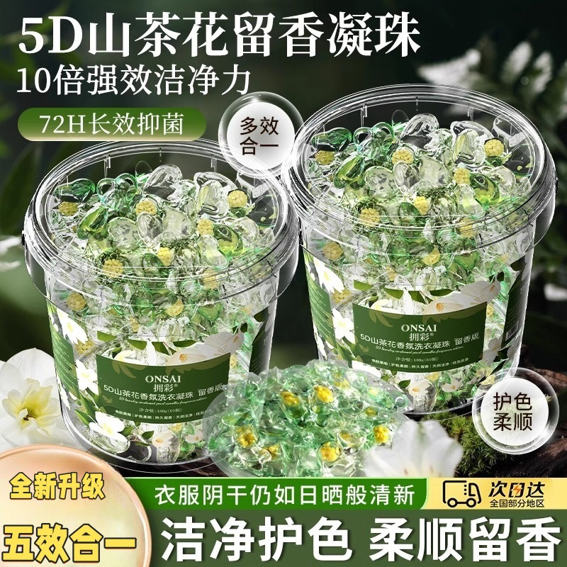 동백 세탁비즈 오래 지속되는 향기 비즈 5D 5-in-1 강력한 오염 제거 향수 유형 항균 및 진드기 제거 액체 비즈