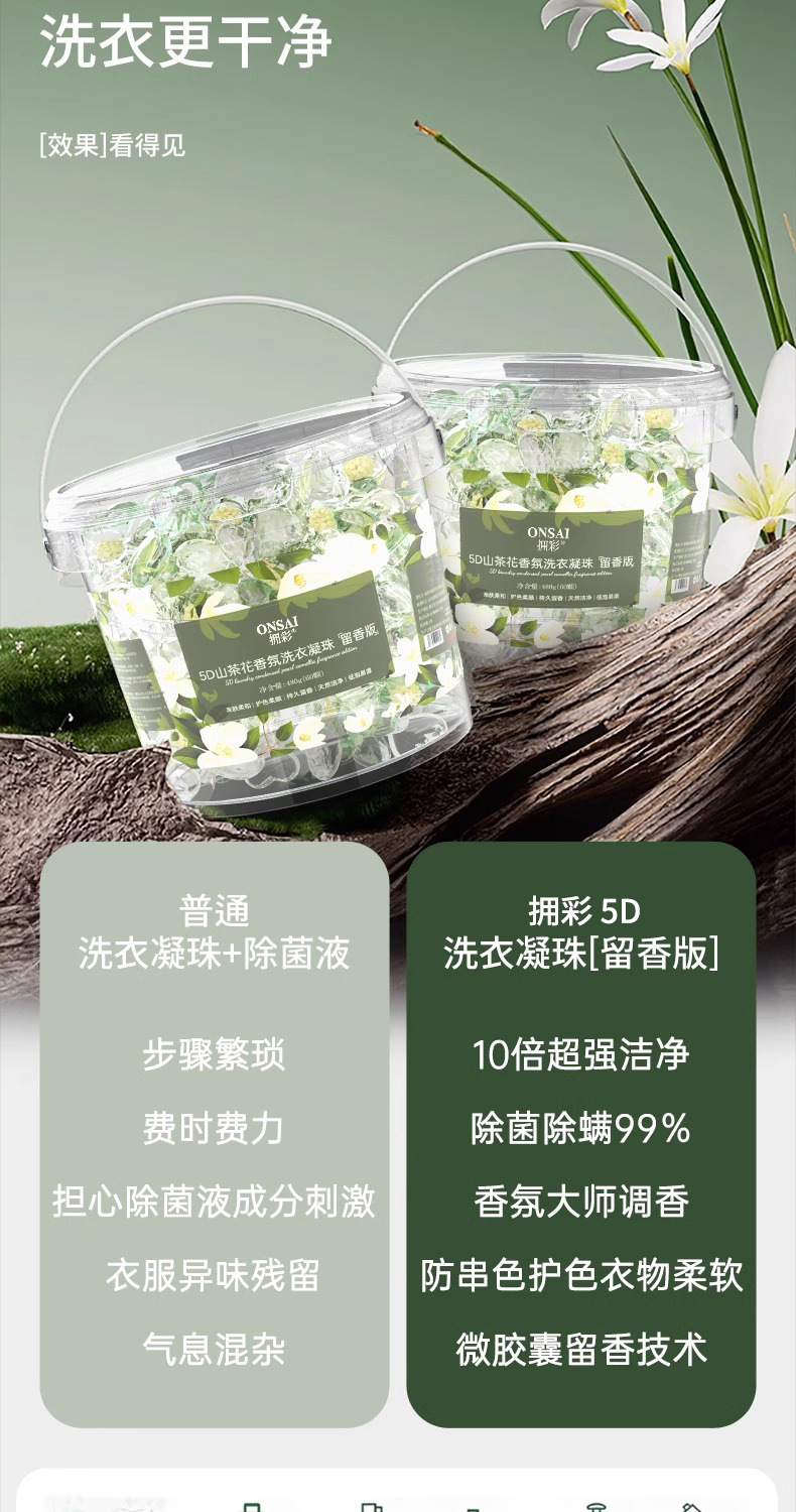 동백 세탁비즈 오래 지속되는 향기 비즈 5D 5-in-1 강력한 오염 제거 향수 유형 항균 및 진드기 제거 액체 비즈스토어 가기