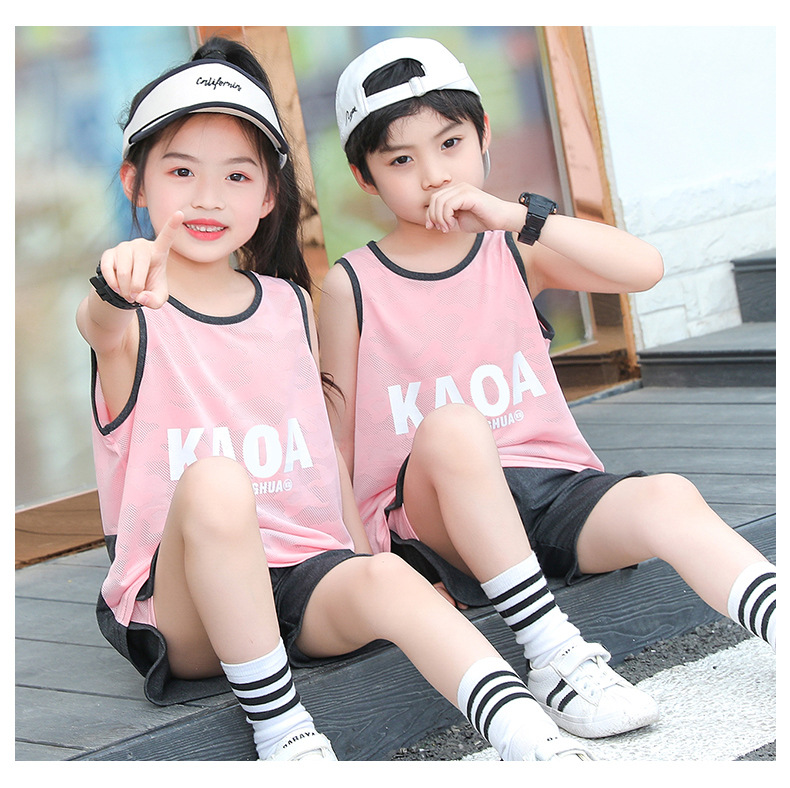 새로운 어린이 스포츠 조끼 세트 25 여름 얇은 메쉬 농구 의류 훈련 의류 소녀 소년 투피스 세트스토어 가기