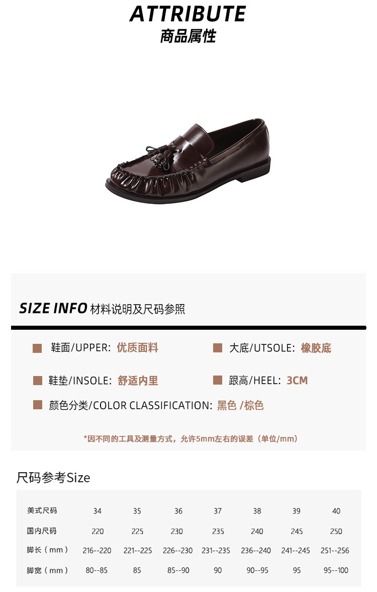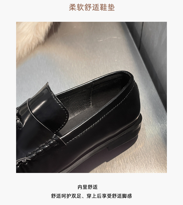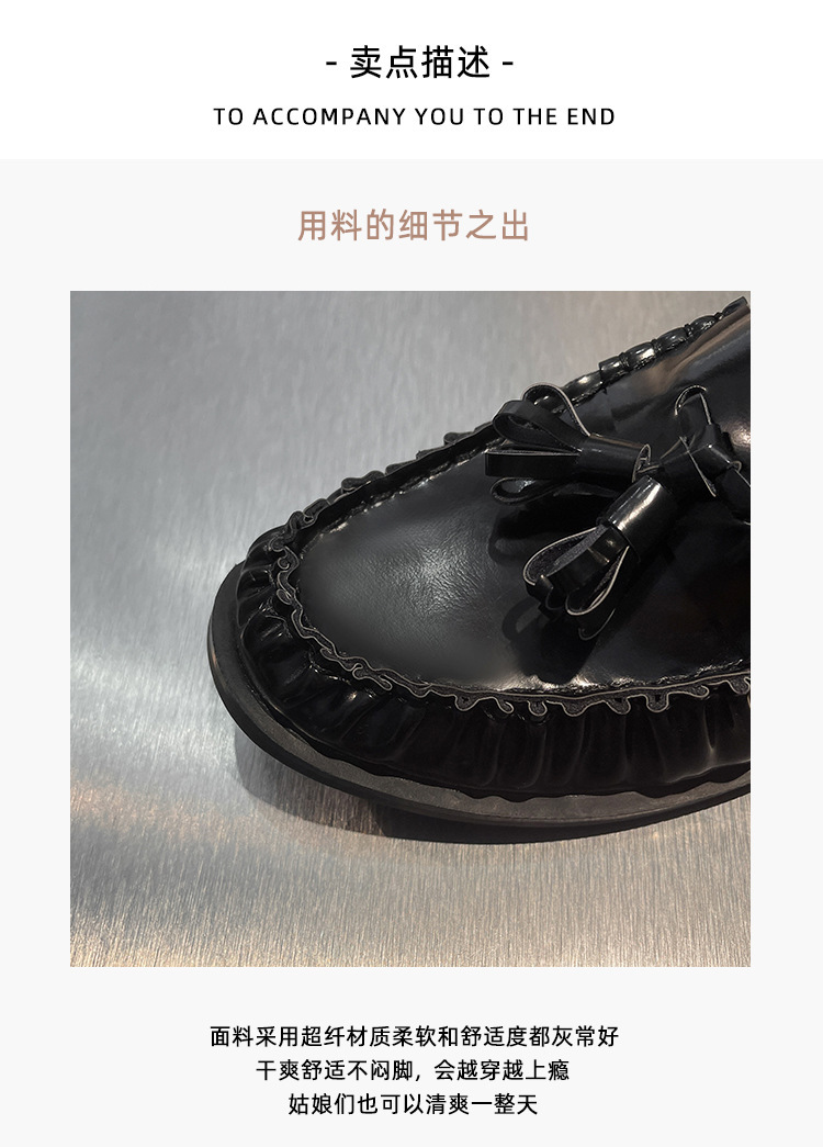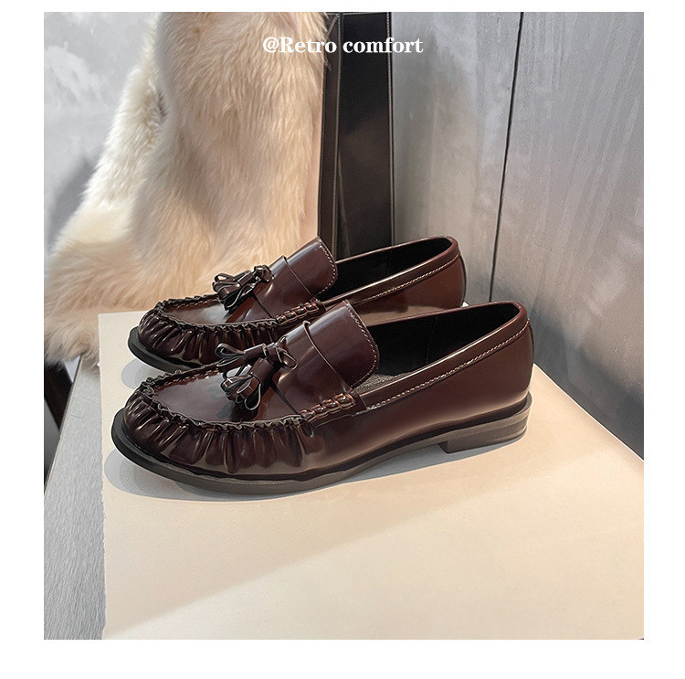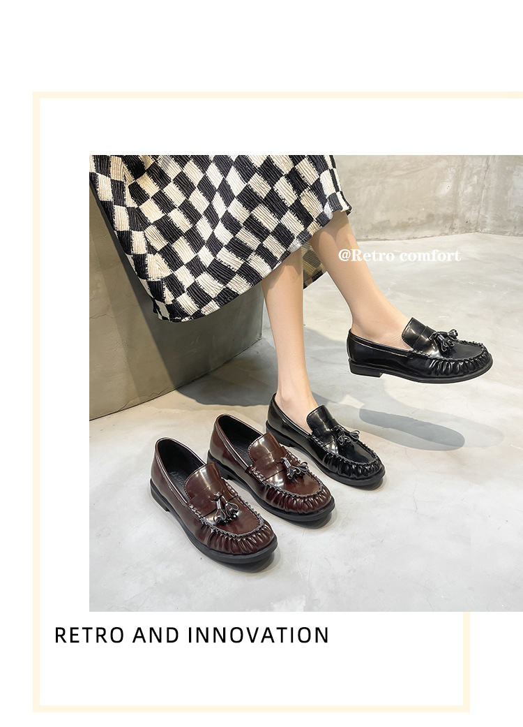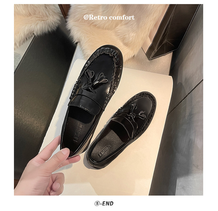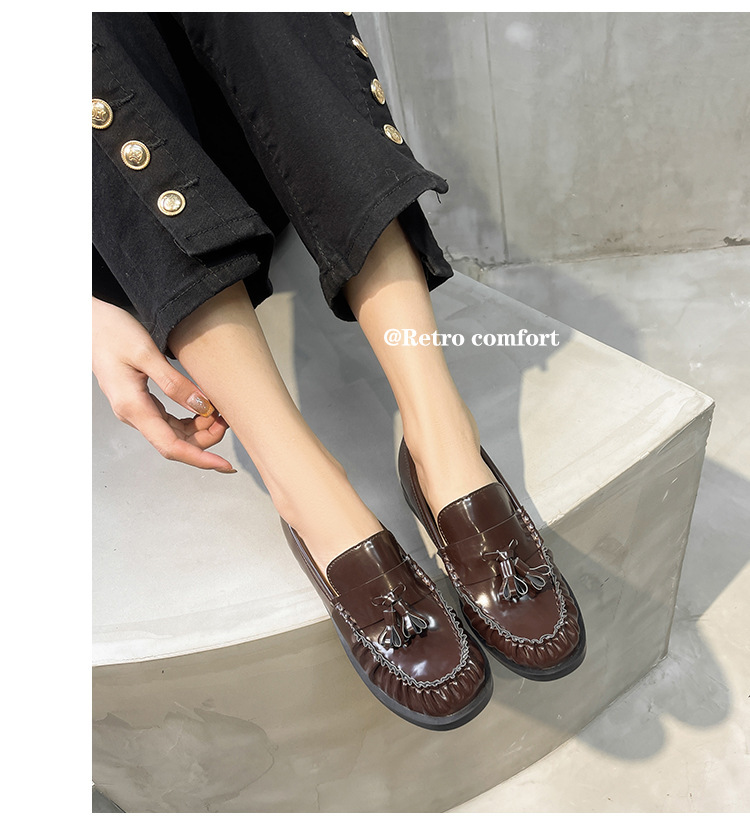정품 가죽 신발 영국 스타일 2025 새로운 특허 가죽 술 짠 둥근 단층 신발 슬립 온 로퍼 여성용스토어 가기