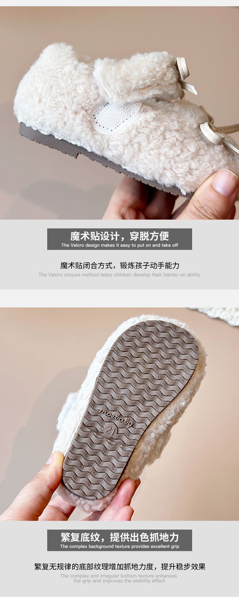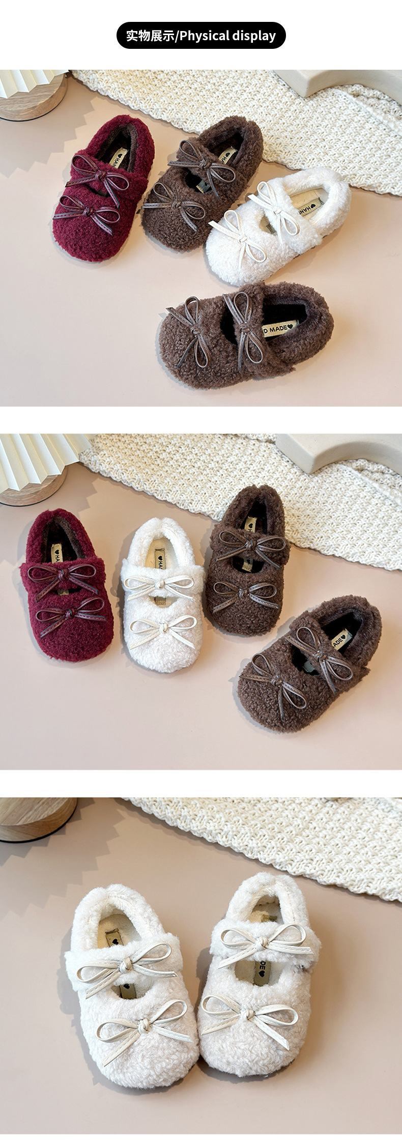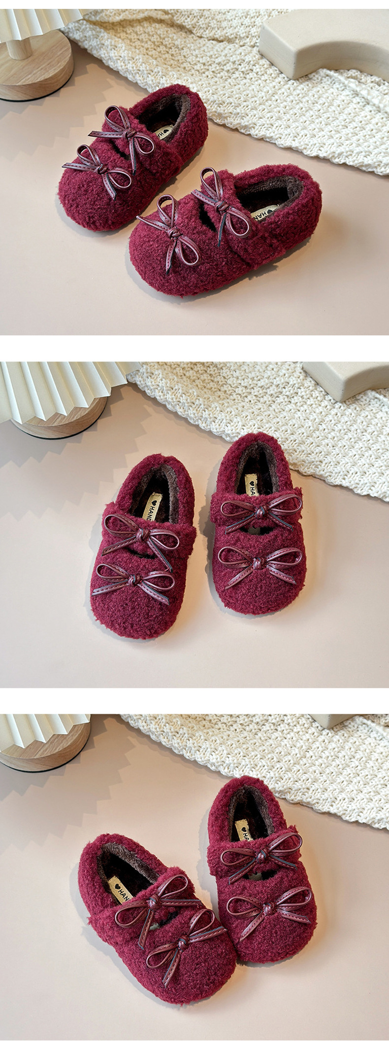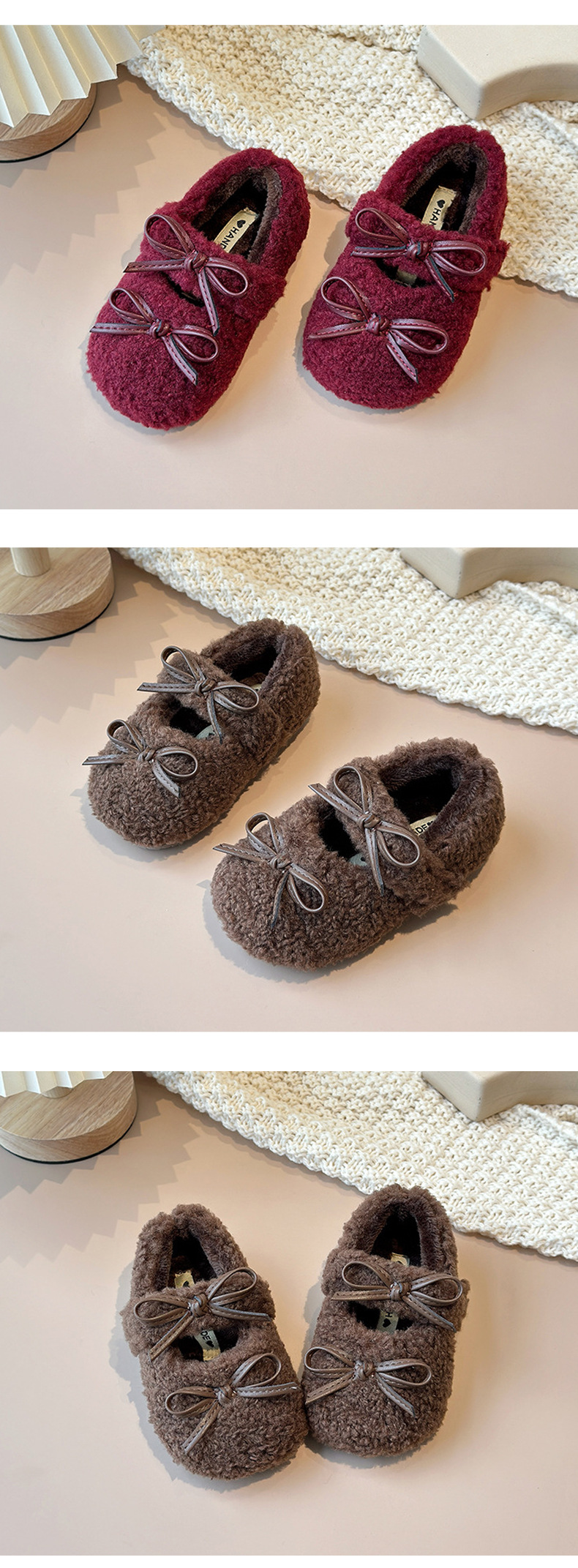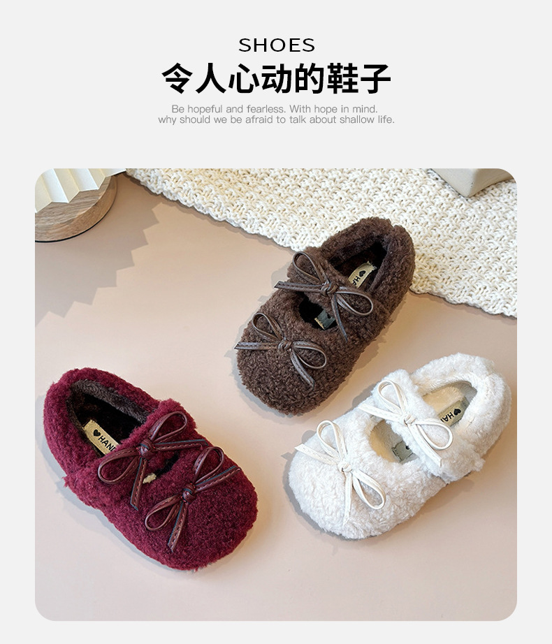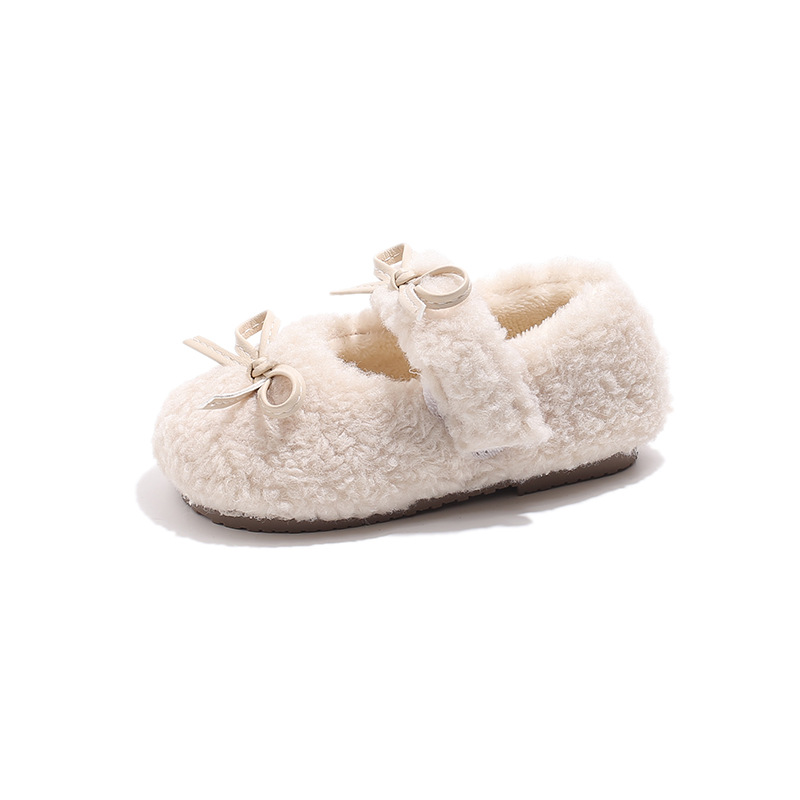 여아용 겨울 신상품 따뜻한 플러시 안감 신발 리본 장식 콩신발 아동용 신발스토어 가기