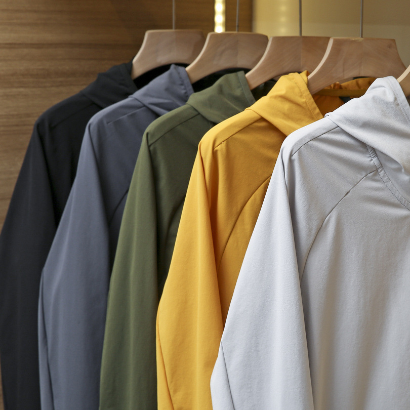 누출을 잡아라! 4 면 높은 탄성 봄과 가을 경량 통기성 스포츠 캐주얼 후드 재킷 남자의 선 스크린 재킷
