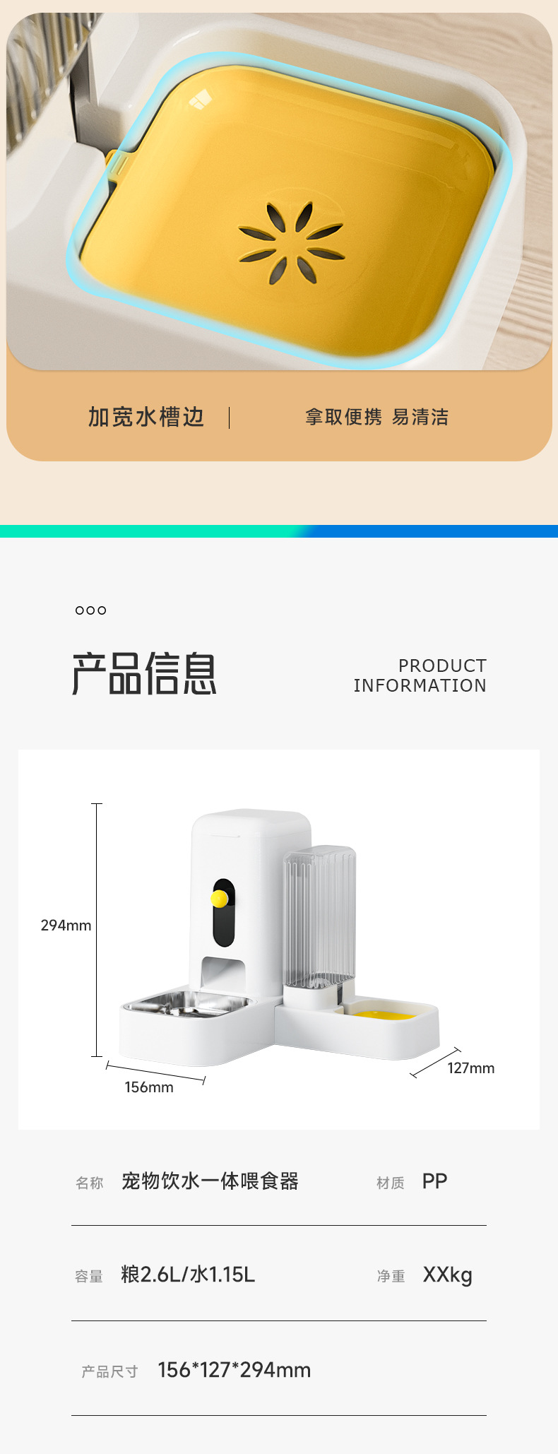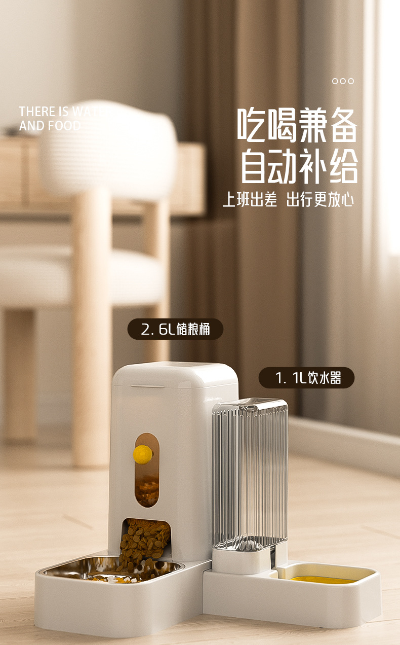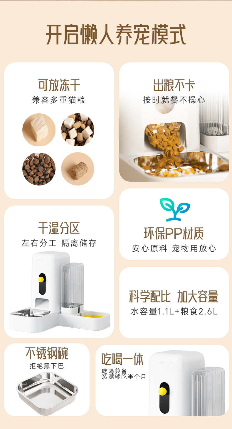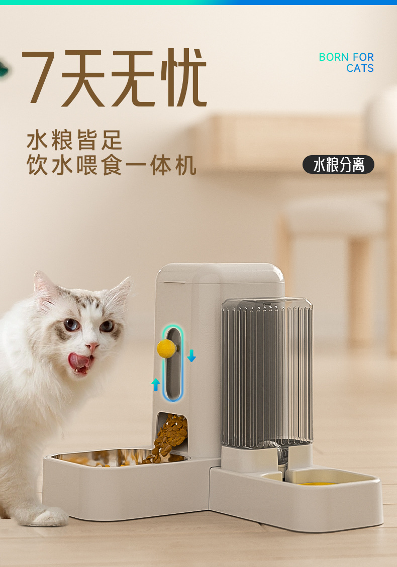 고양이 자동 급식기, 정수기, 일체형 고양이 사료 그릇, 개 그릇, 넘어짐 방지 애완동물 급식 및 급수기