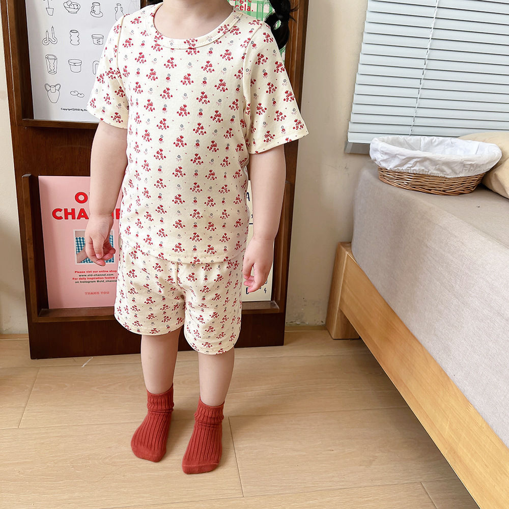 여름 소녀 홈 의류 세트 아기의 서양식 어린이 맞춤형 트렌디 브랜드 모리 꽃 반팔 에어컨 파자마스토어 가기