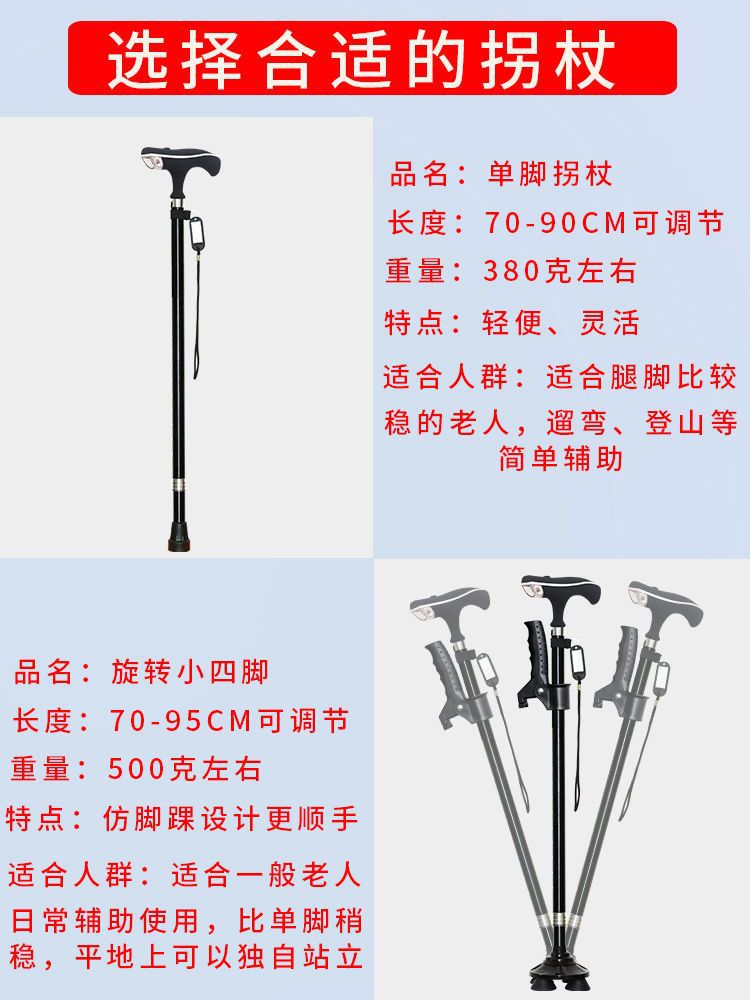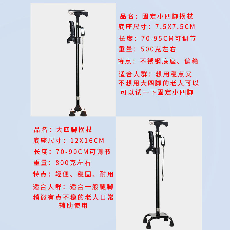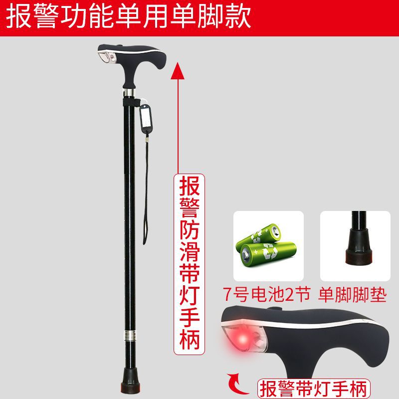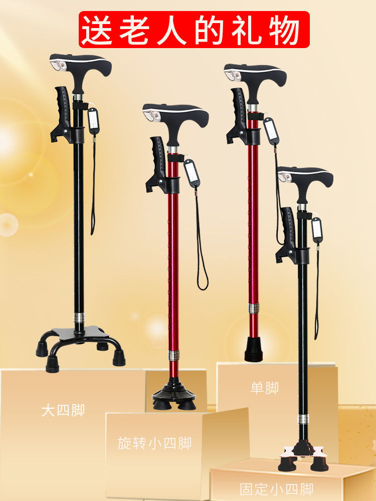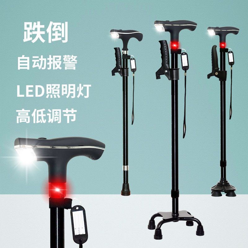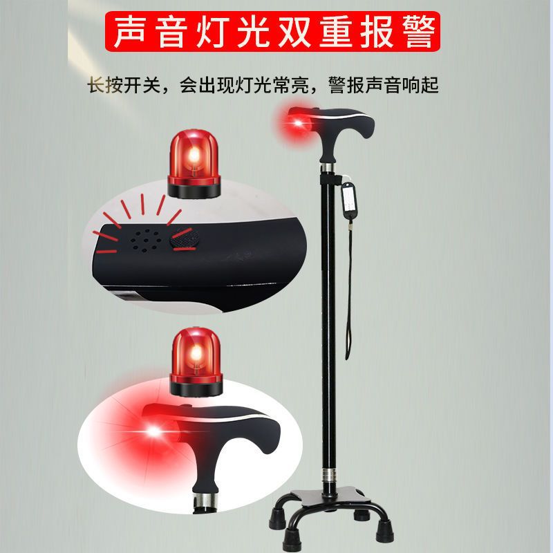 노인용 지팡이, 넘어짐 방지 지팡이, 4개의 발, 미끄럼 방지, 조명, 강력하고 다기능, 자동 경보 기능이 있는 노인용 지팡이스토어 가기