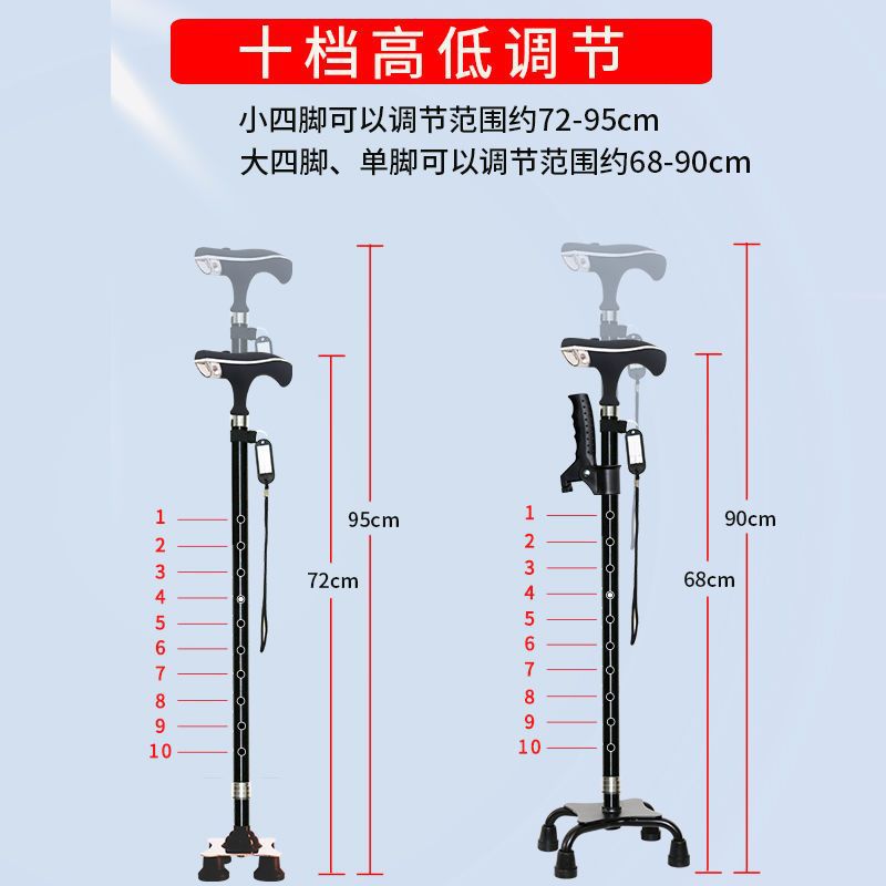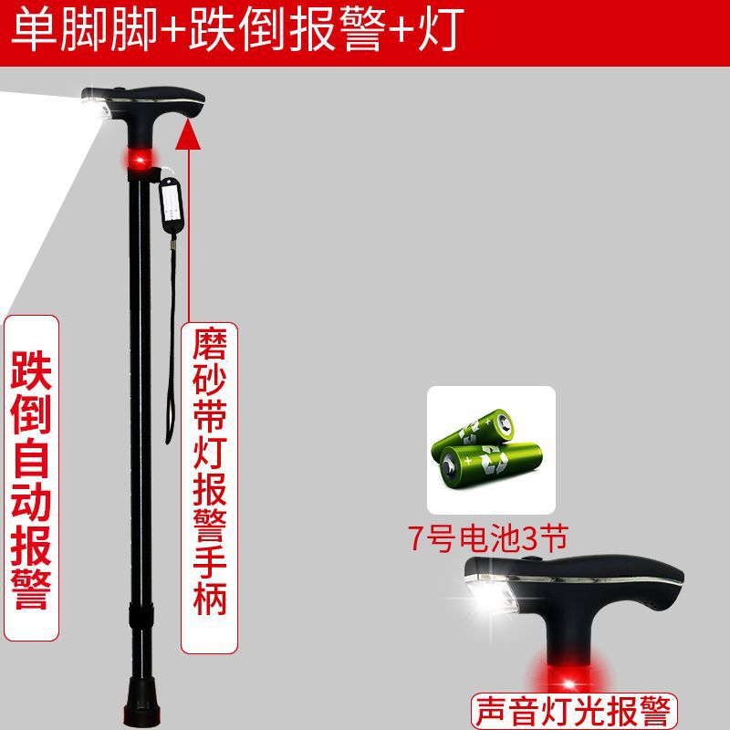 노인용 지팡이, 넘어짐 방지 지팡이, 4개의 발, 미끄럼 방지, 조명, 강력하고 다기능, 자동 경보 기능이 있는 노인용 지팡이