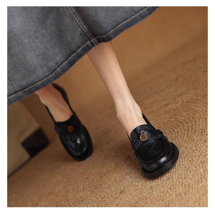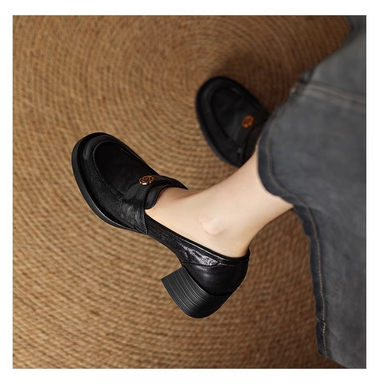 레트로 슬립온 여성화, 하이힐, 다용도 2025 봄 신상 여성용 소프트솔 로퍼, 영국식 소형 가죽신스토어 가기