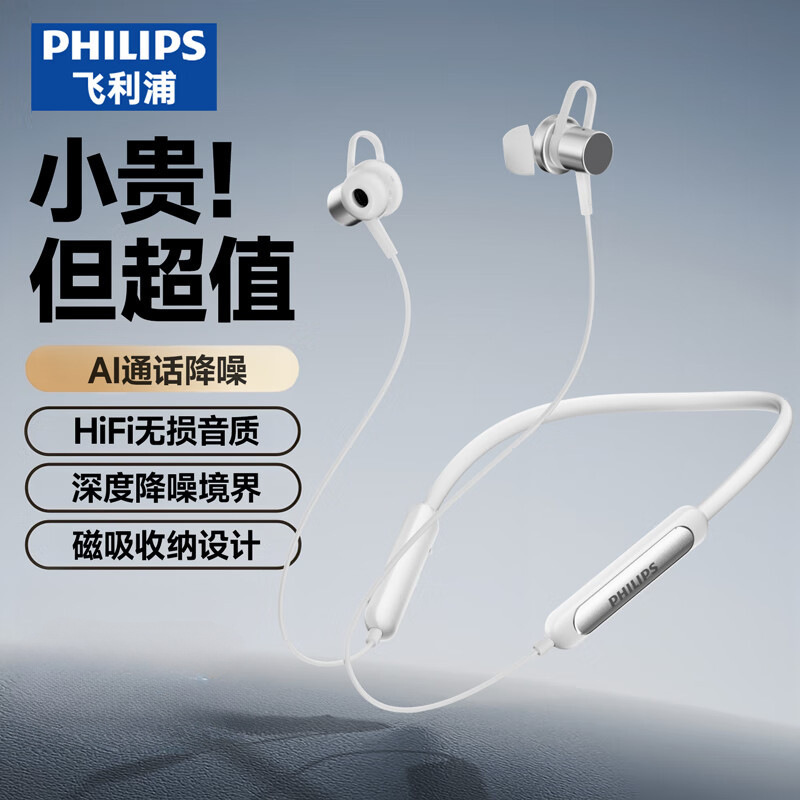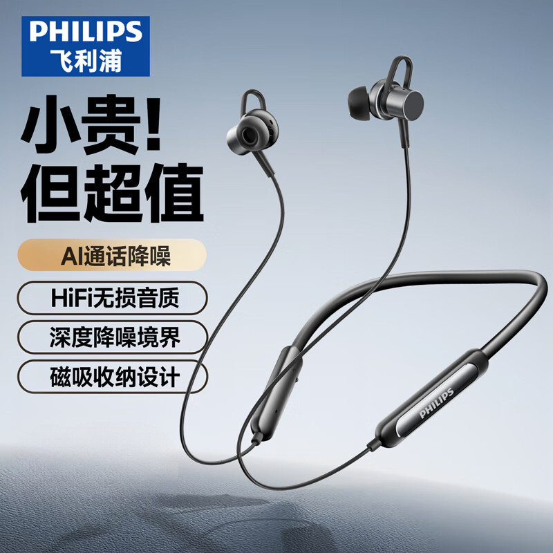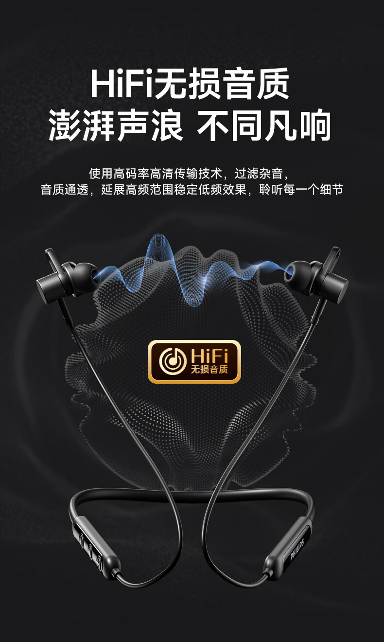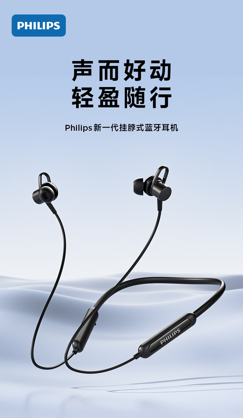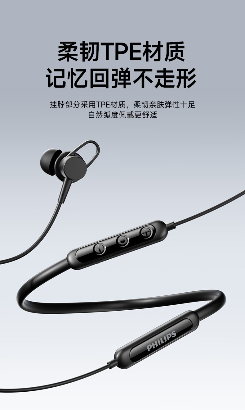 필립스 (PHILIPS) 블루투스 헤드셋 교수형 목 유형 무선 목 교수형 모션 노이즈 감소 장기 내구성 교수형 귀