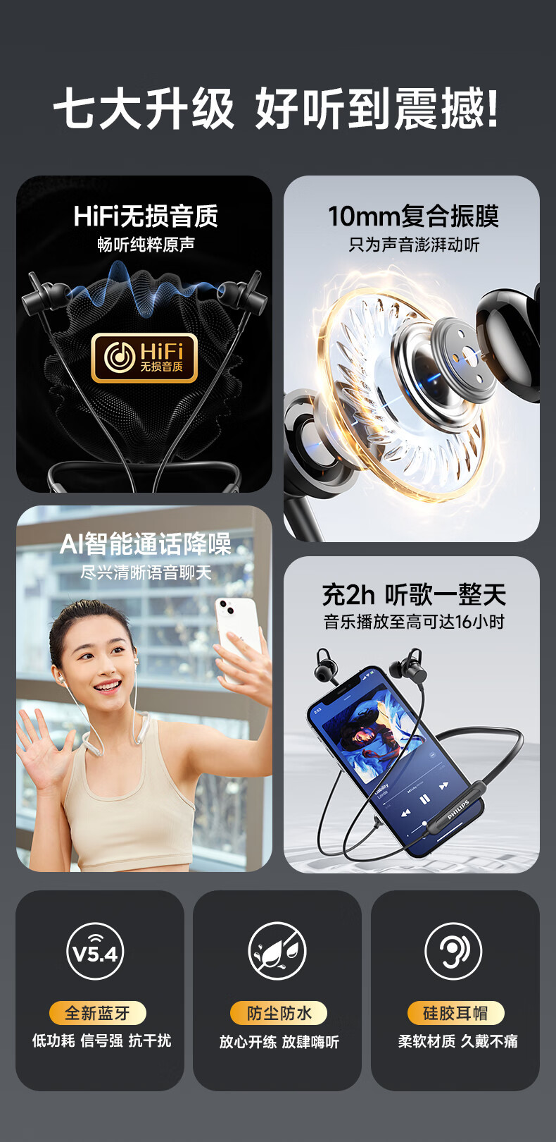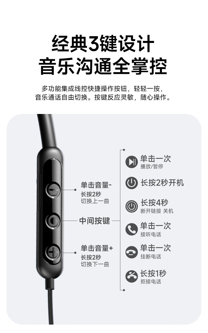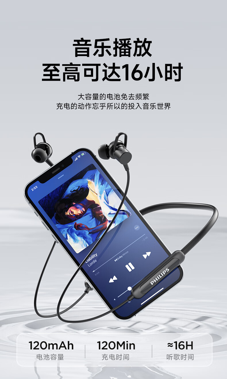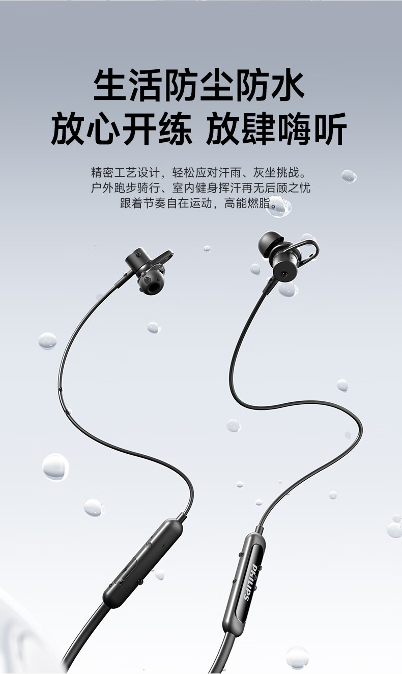 필립스 (PHILIPS) 블루투스 헤드셋 교수형 목 유형 무선 목 교수형 모션 노이즈 감소 장기 내구성 교수형 귀