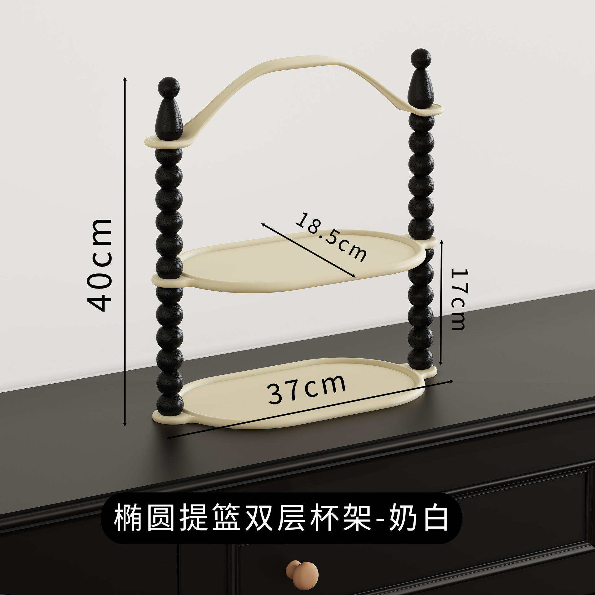 • 타원형 바구니 더블 레이어 컵 홀더 - 밀크 화이트