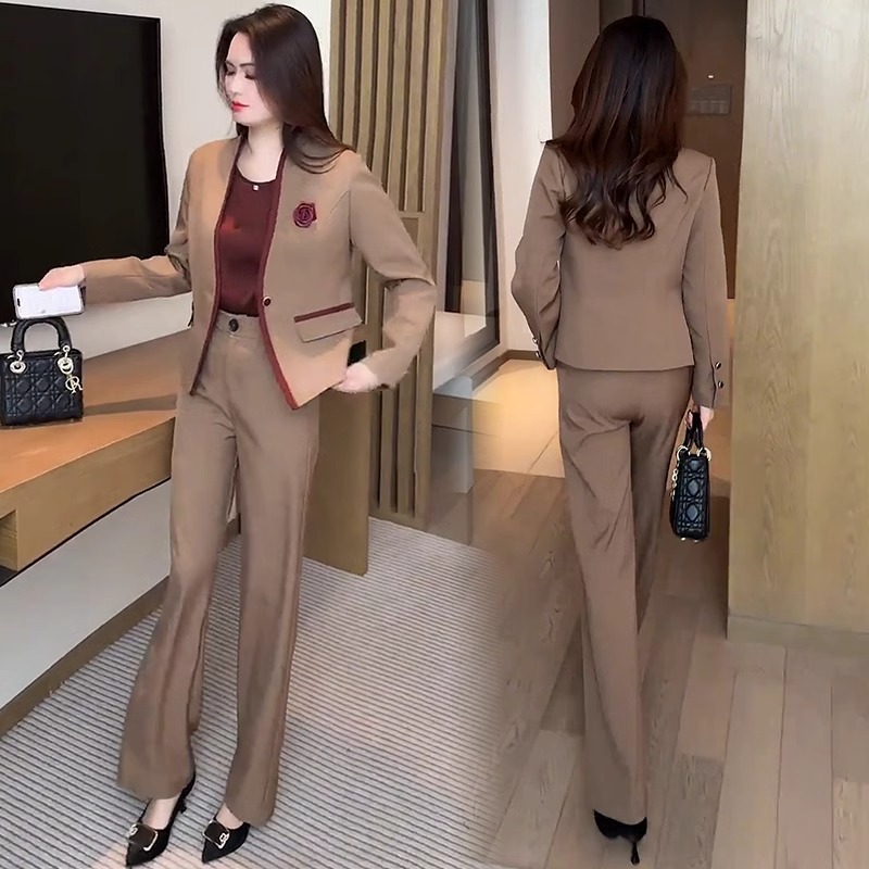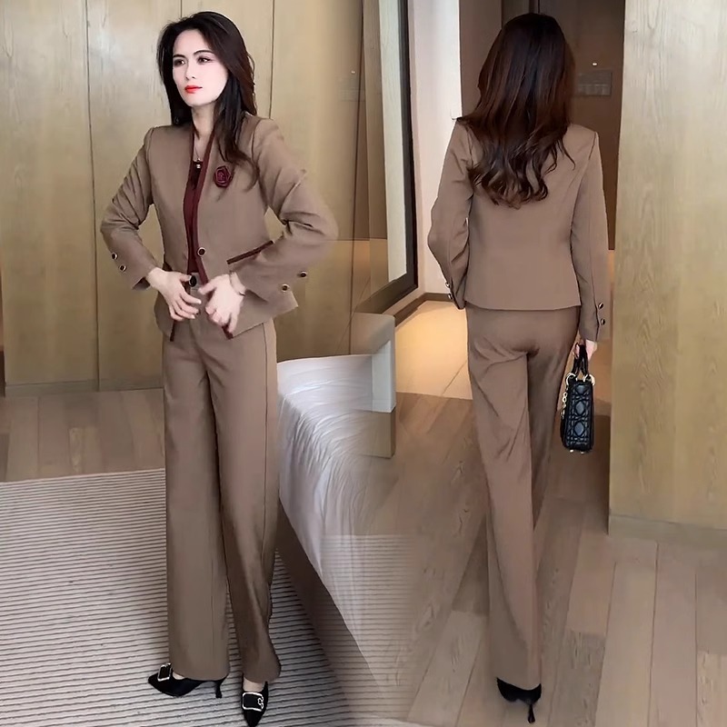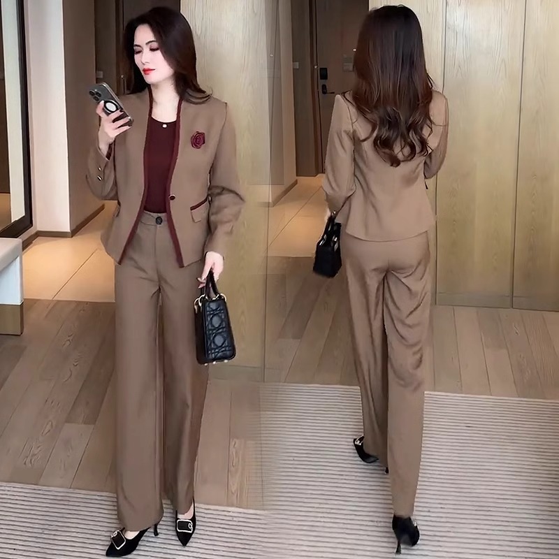 패션 세트 여성 2025 슈퍼 파이어 스프링 원피스 슬림 전문 세트 재킷 조끼 와이드 레그 팬츠 3 피스 세트