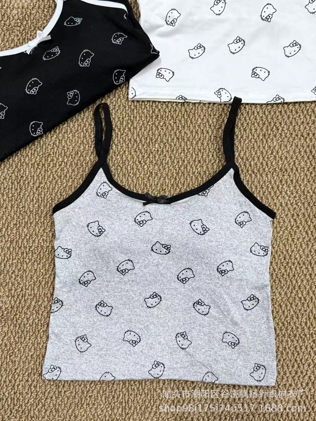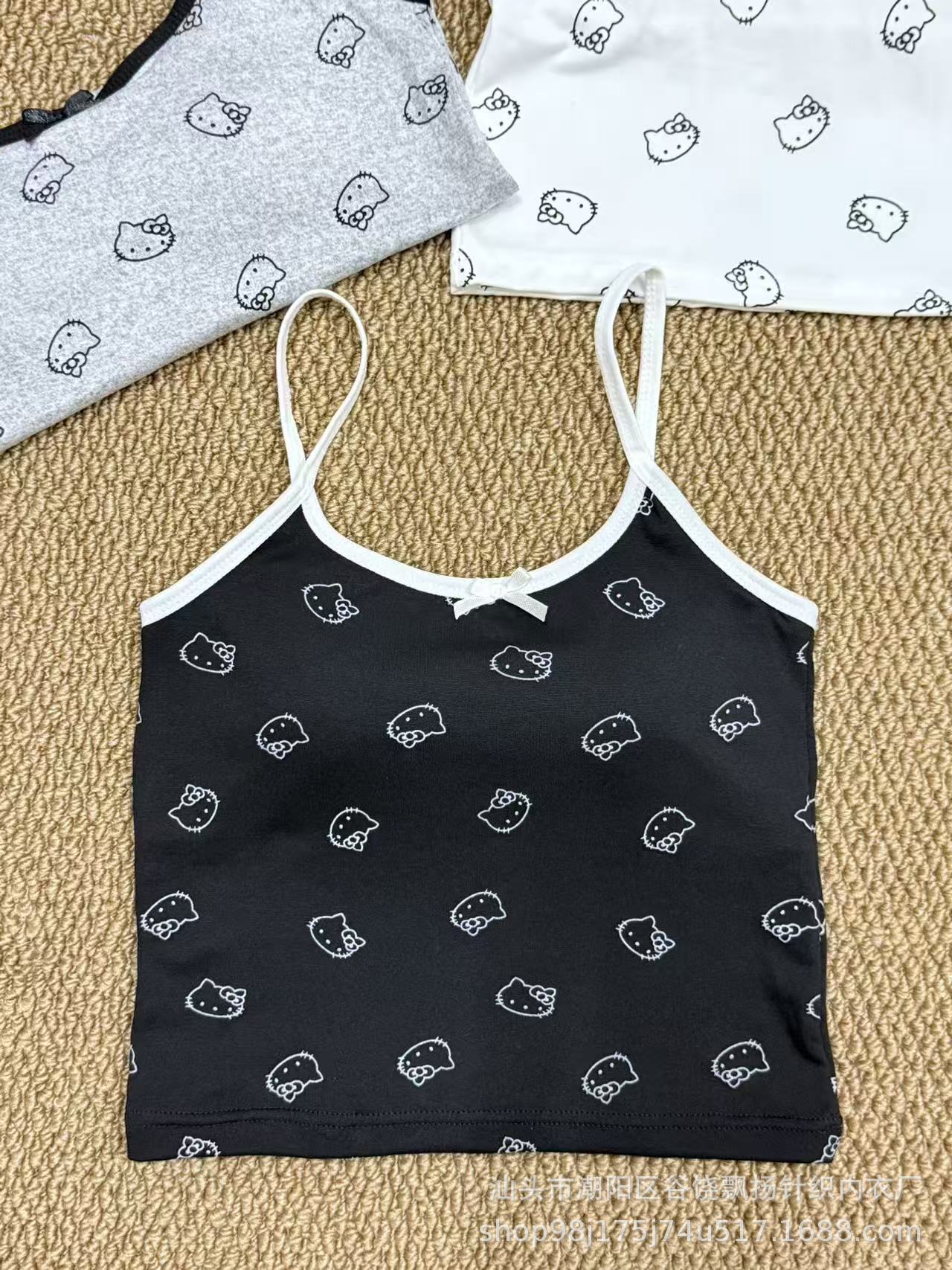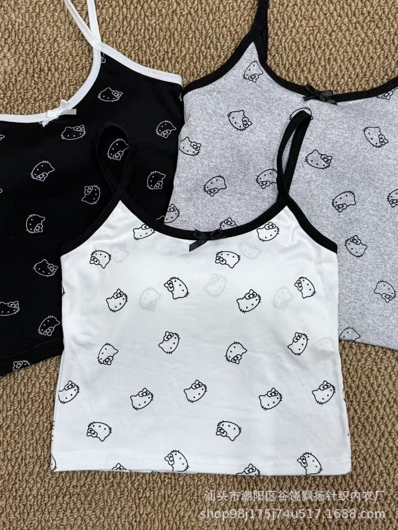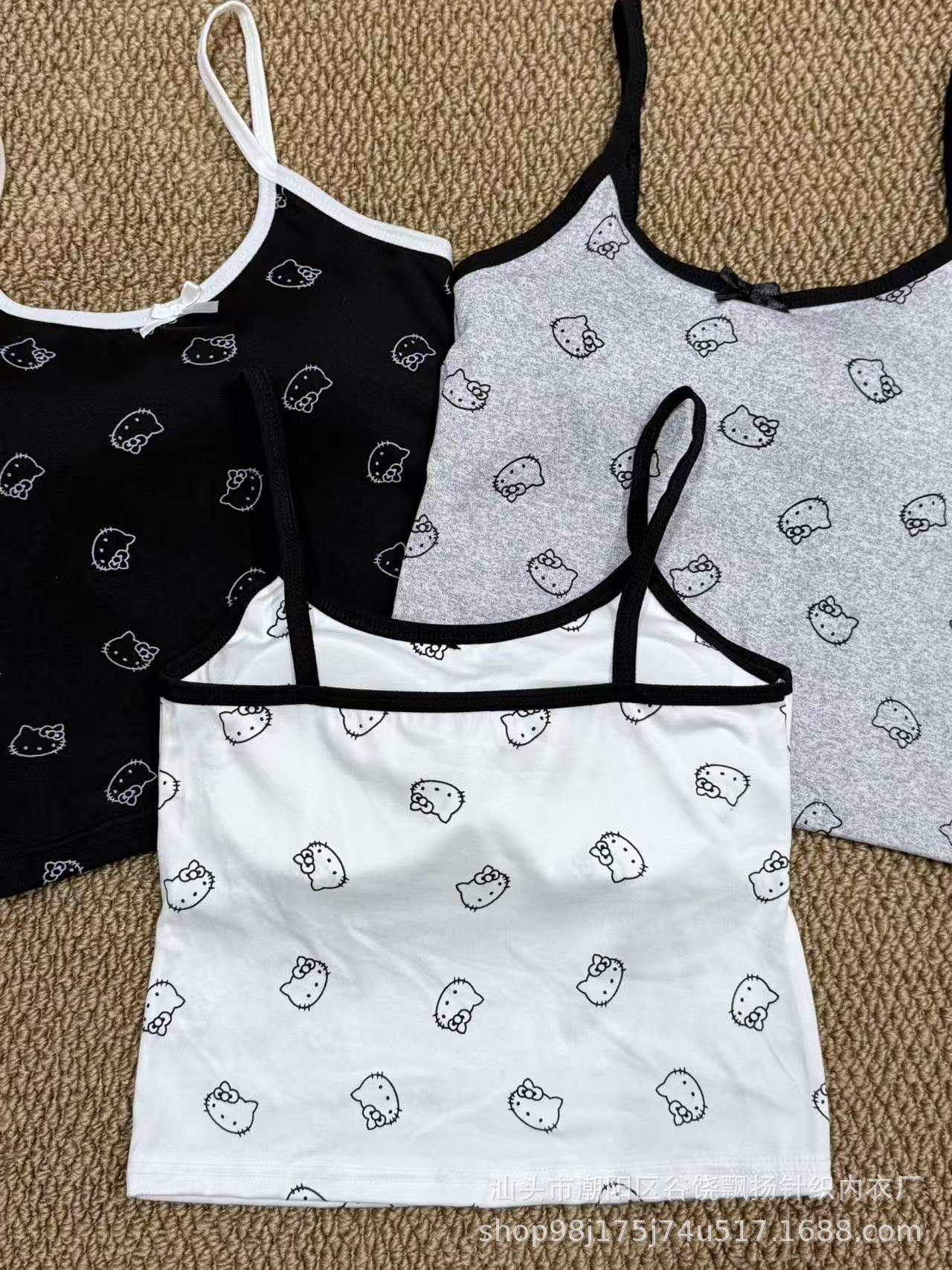 새로운 bm 스타일 일본식 달콤하고 매운 kt 만화 프린트 콘돌 스트랩 조끼 가슴 패드 아름다운 백 슬림 핏 핫 걸 탑 도매