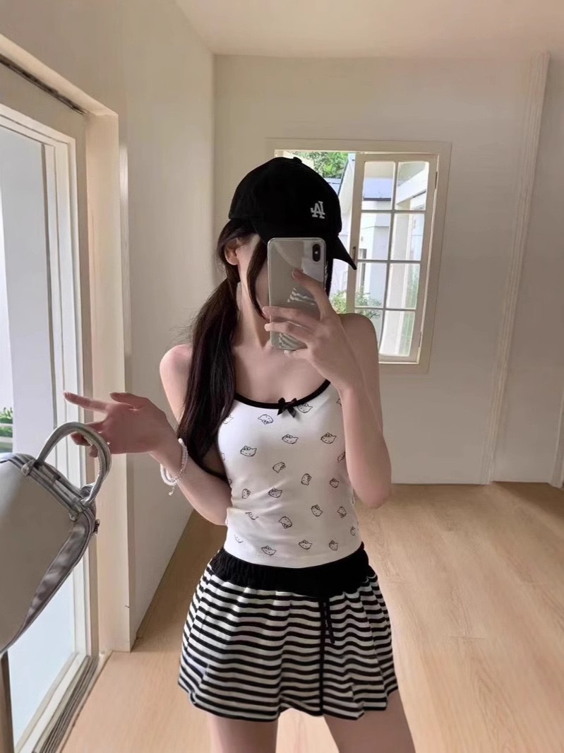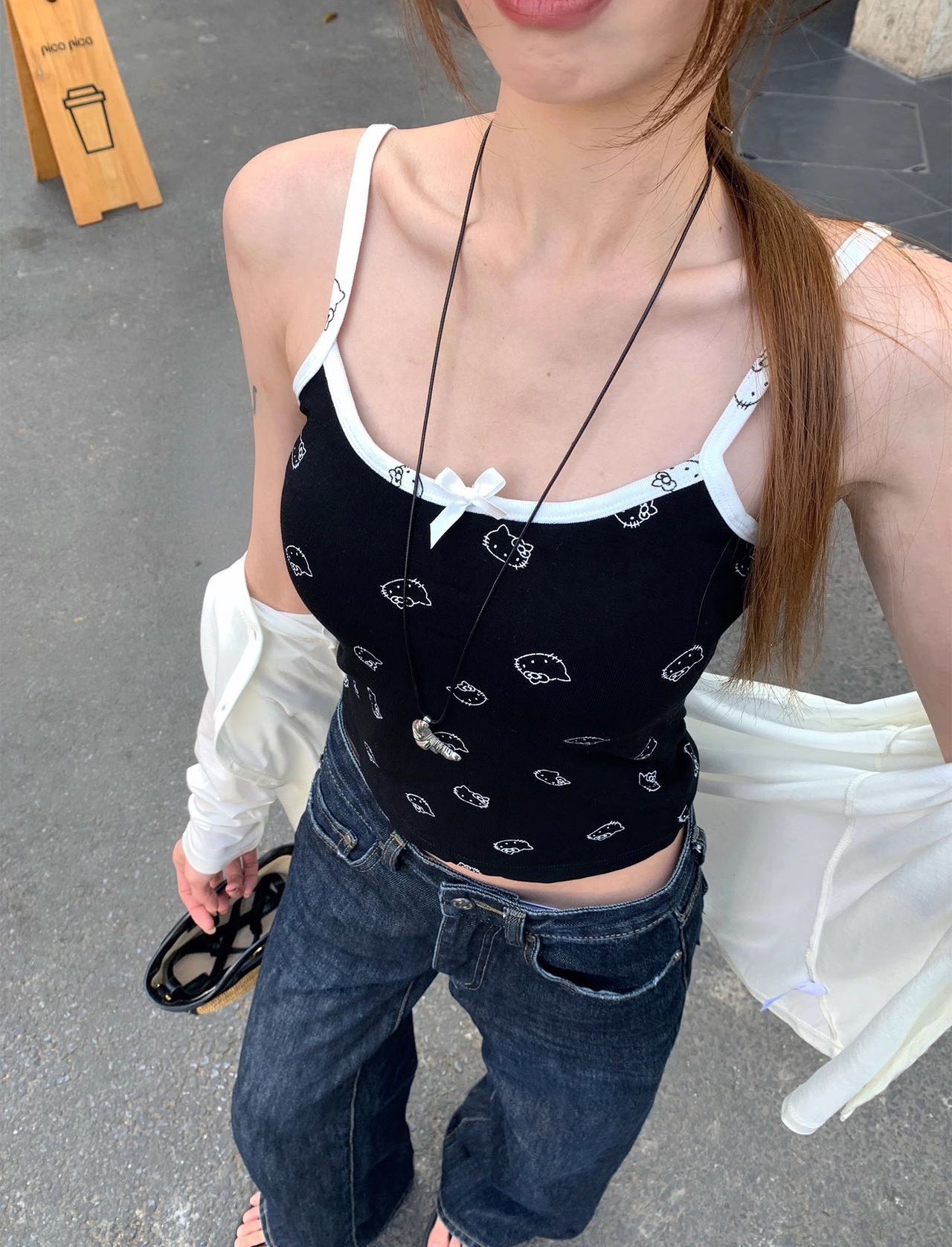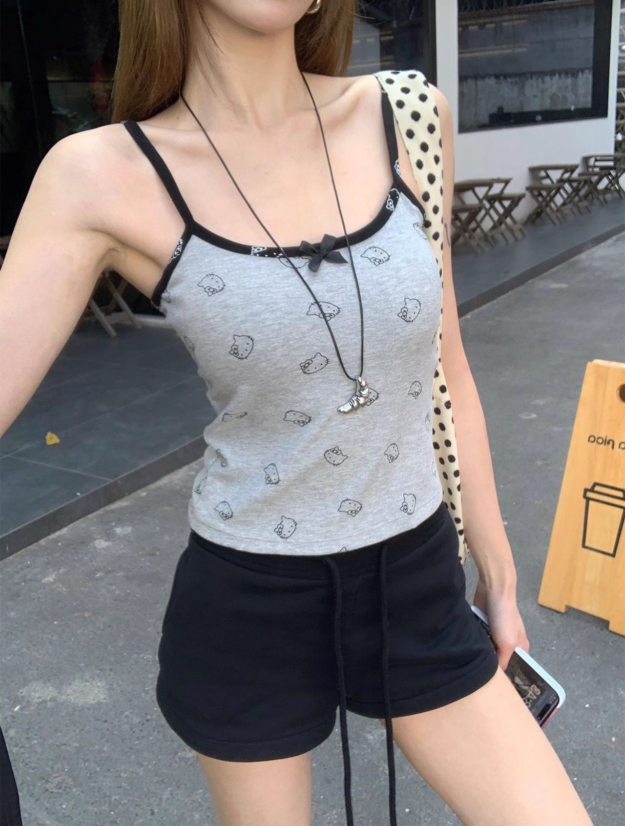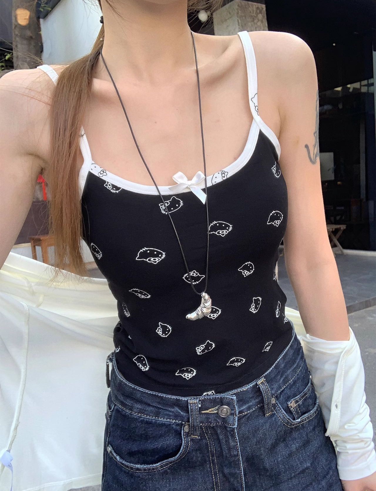 새로운 bm 스타일 일본식 달콤하고 매운 kt 만화 프린트 콘돌 스트랩 조끼 가슴 패드 아름다운 백 슬림 핏 핫 걸 탑 도매