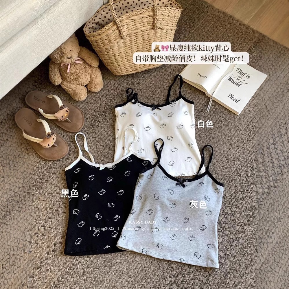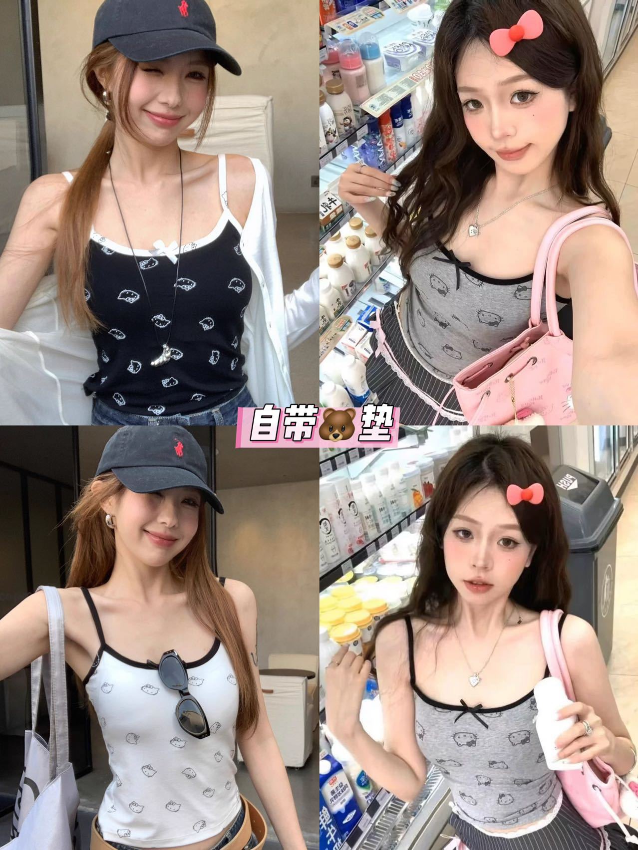 새로운 bm 스타일 일본식 달콤하고 매운 kt 만화 프린트 콘돌 스트랩 조끼 가슴 패드 아름다운 백 슬림 핏 핫 걸 탑 도매스토어 가기