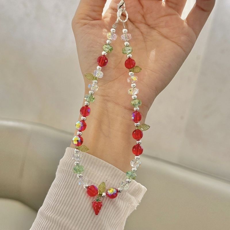 새 휴대 전화 끈 짧은 틈새 딸기 펜던트 휴대 전화 체인 ccd 구슬 카메라 체인 펜던트스토어 가기