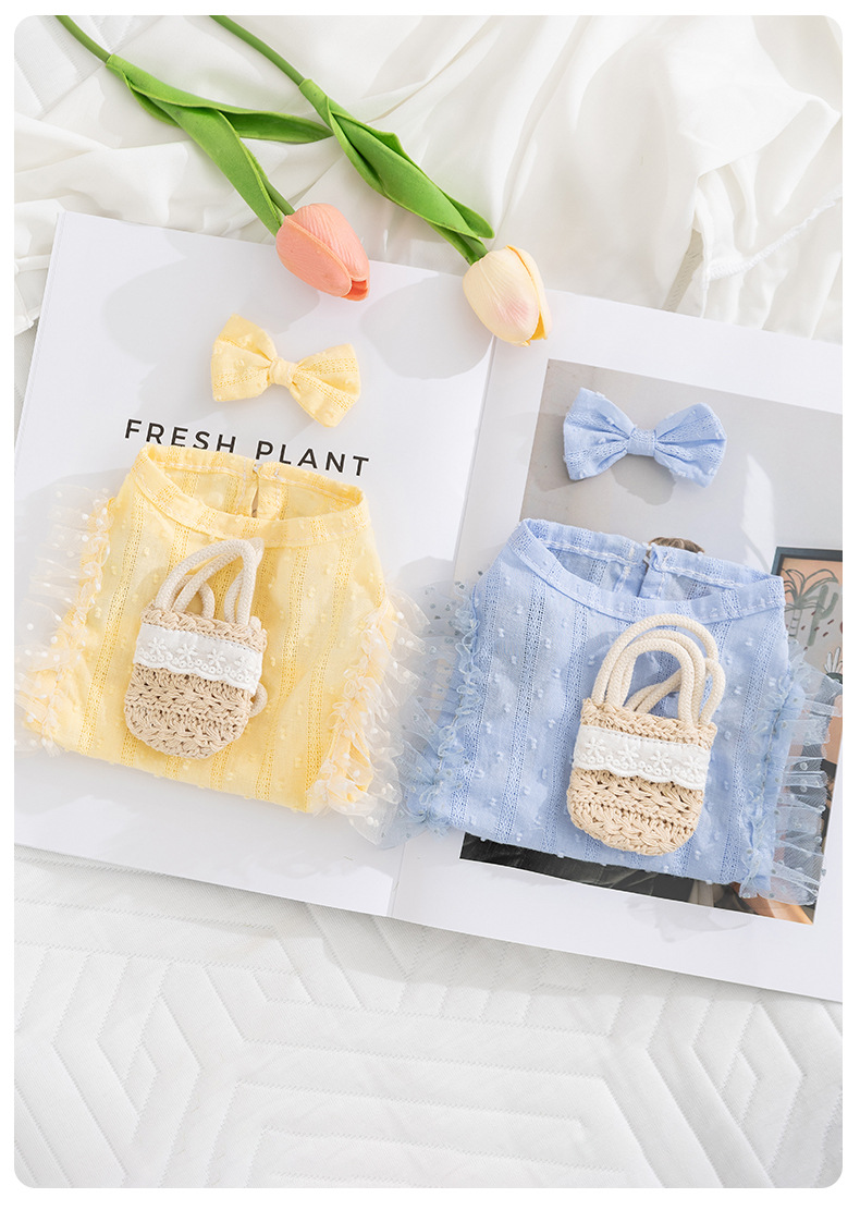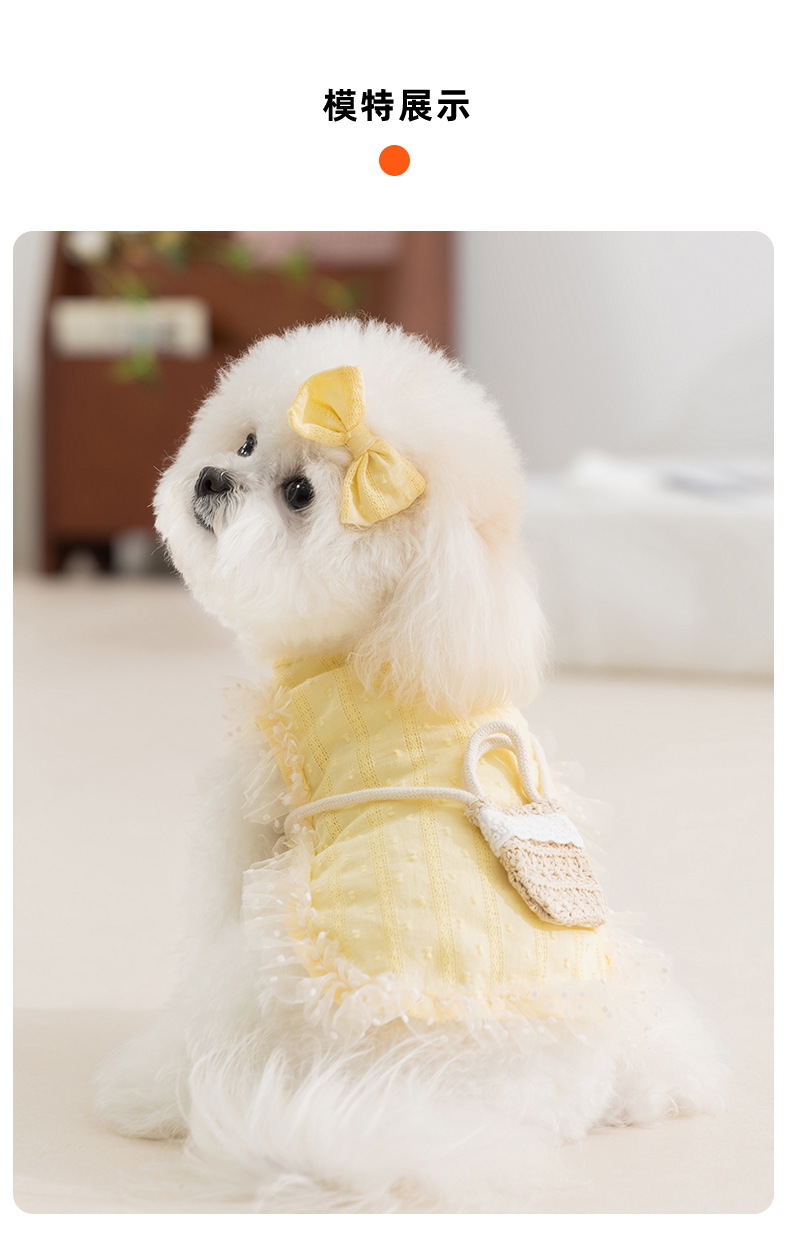 봄과 여름 개 진정 목가적 인 사첼 두 다리 조끼 미디어와 작은 개 레이디 스타일 고양이 애완 동물 테디 옷스토어 가기