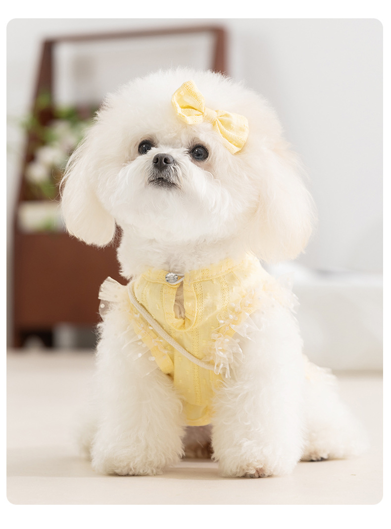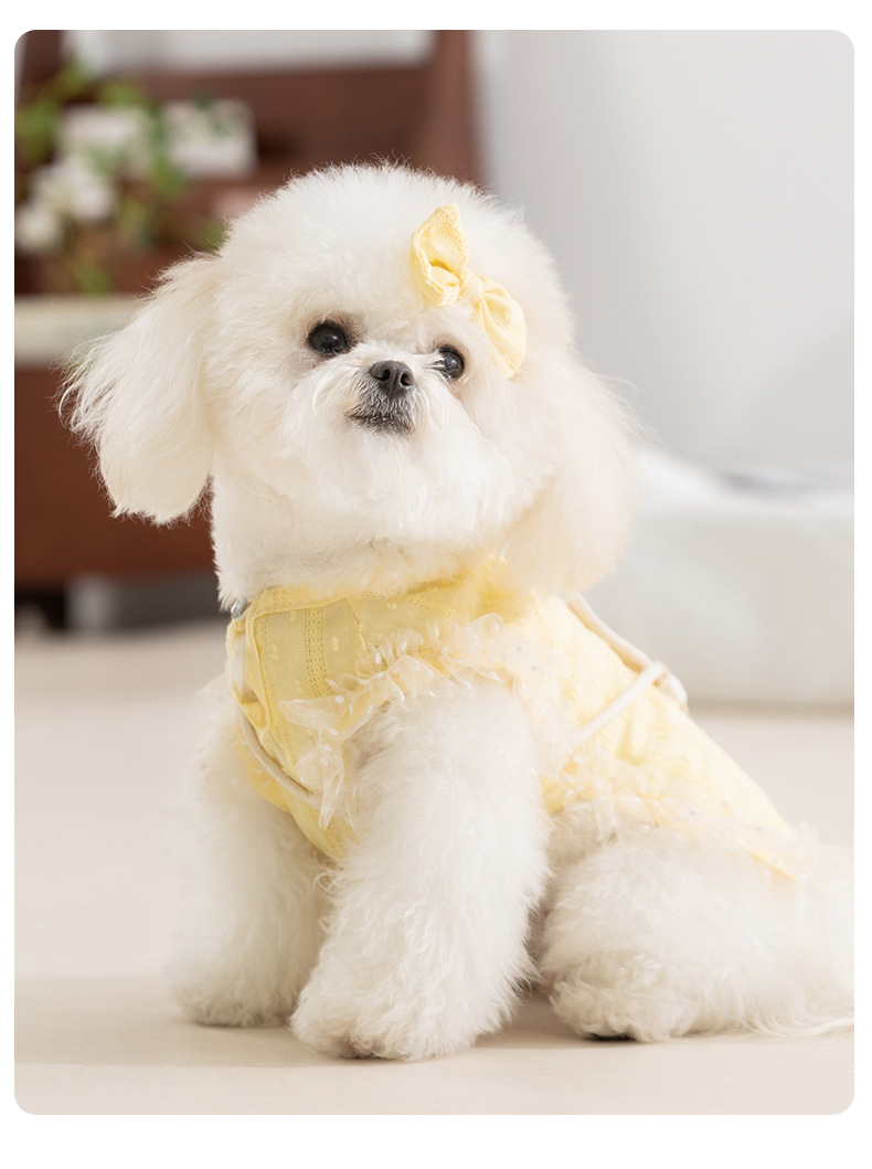 봄과 여름 개 진정 목가적 인 사첼 두 다리 조끼 미디어와 작은 개 레이디 스타일 고양이 애완 동물 테디 옷