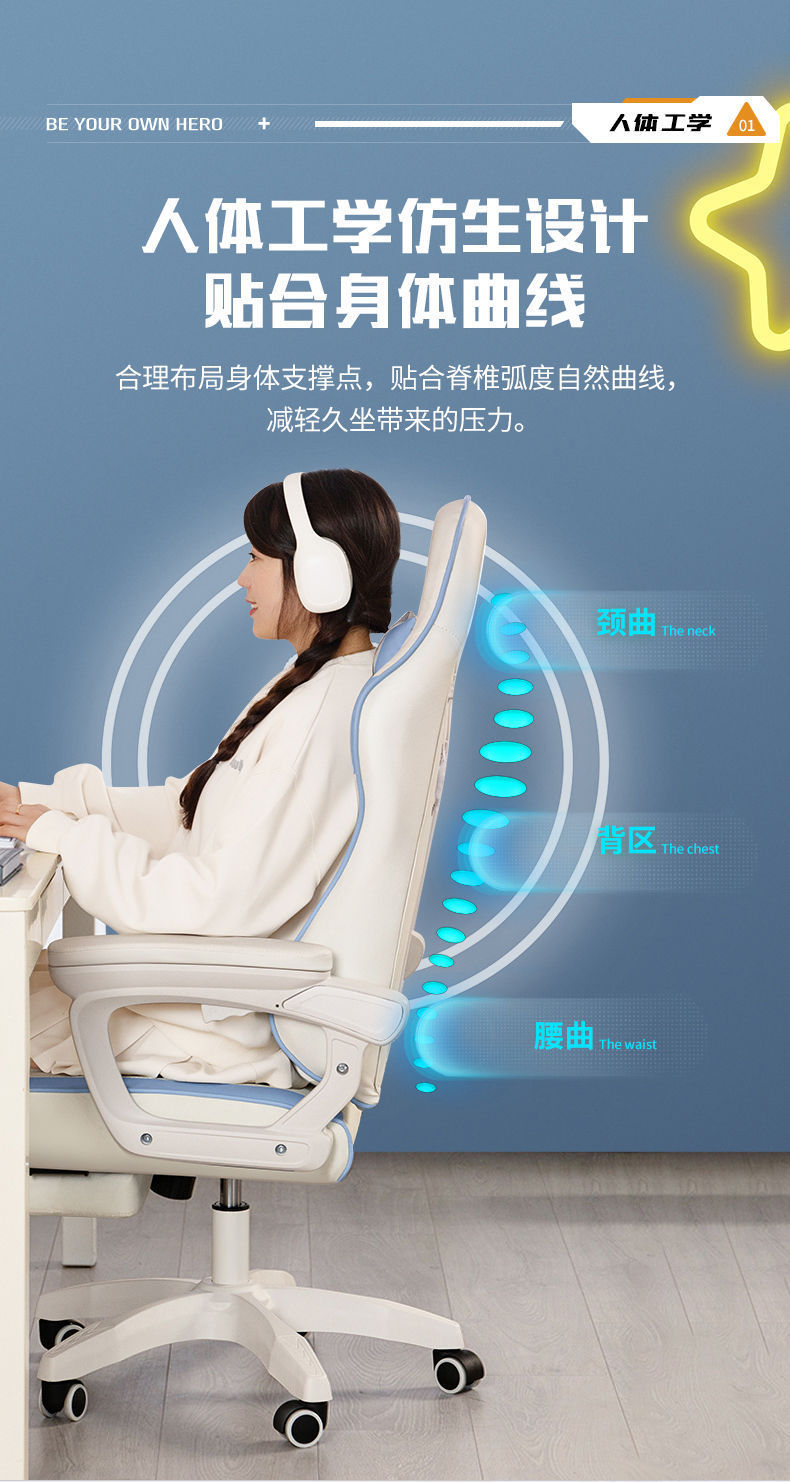 E-스포츠 의자, 리프팅 가능한 인체공학적 의자, 집에서 편안하게 앉아 있는 기숙사 대학생, 올인원 특별 인터넷 연예인 생방송스토어 가기