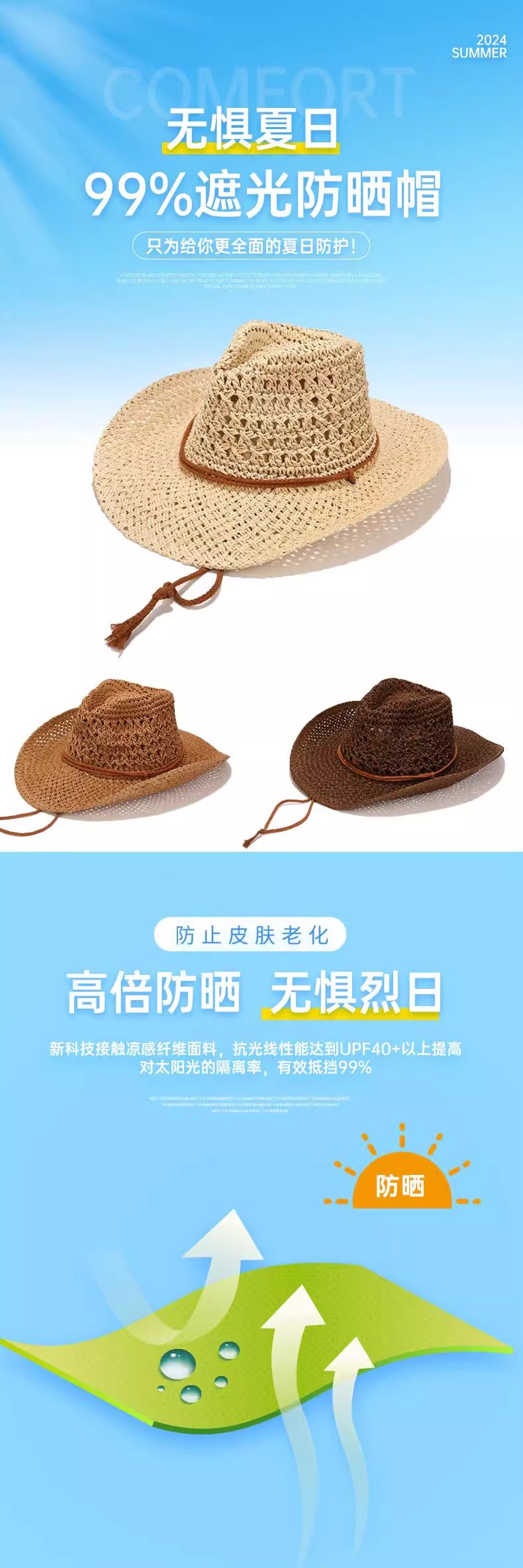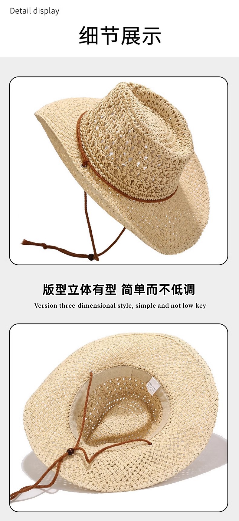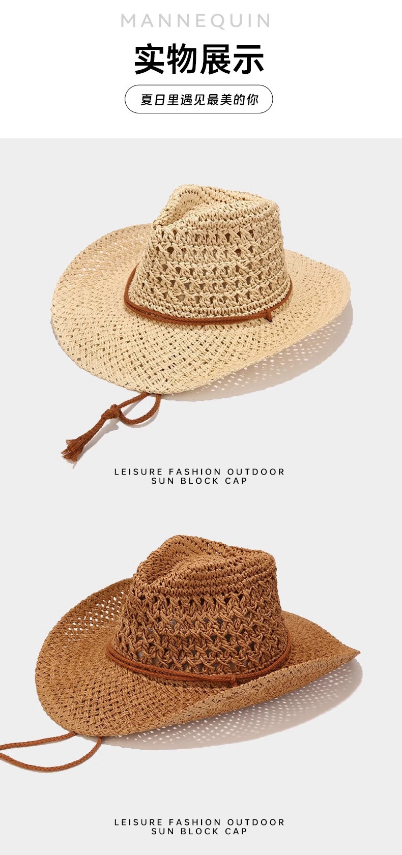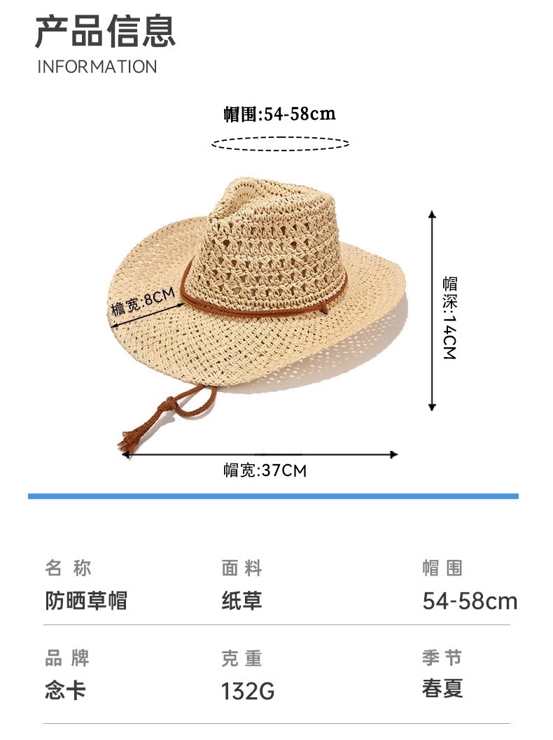 남성과 여성을 위한 국경 간 인기 손으로 짠 카우보이 모자, 여름용 큰 챙 밀짚 모자, 해변용 태양 모자, 야외 등산용 태양 보호 모자스토어 가기
