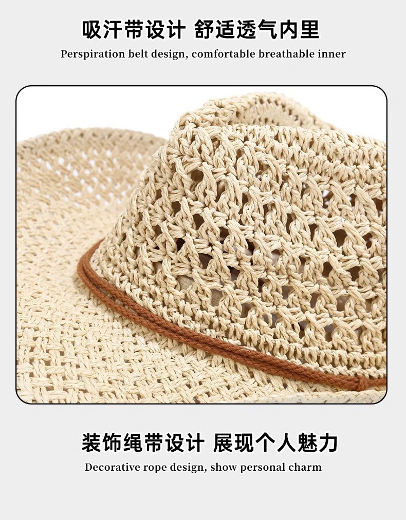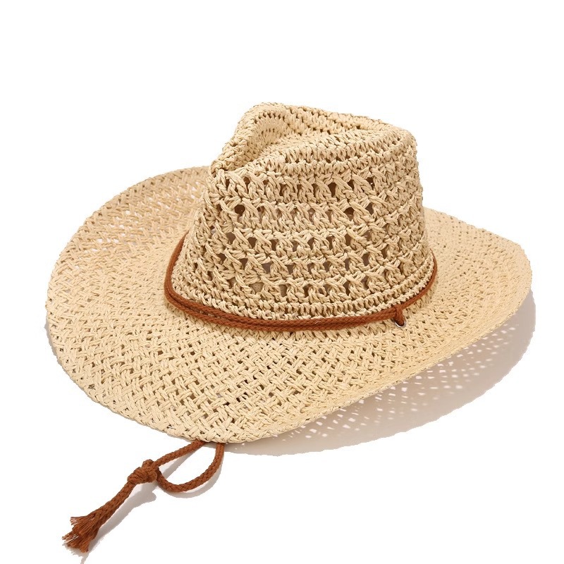 남성과 여성을 위한 국경 간 인기 손으로 짠 카우보이 모자, 여름용 큰 챙 밀짚 모자, 해변용 태양 모자, 야외 등산용 태양 보호 모자