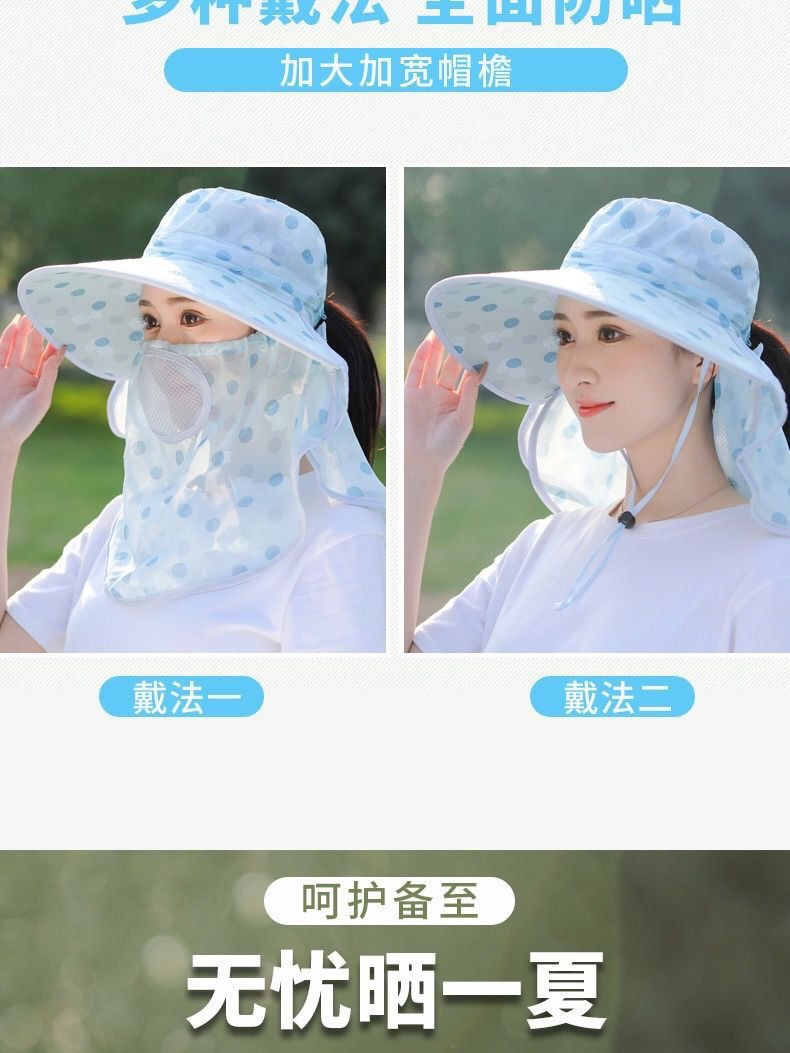 여름 얼굴 덮기 차 따기 모자 새로운 유행 올 매치 태양 보호 태양 모자 얼굴 덮기 목 보호 UV 보호 태양 모자스토어 가기
