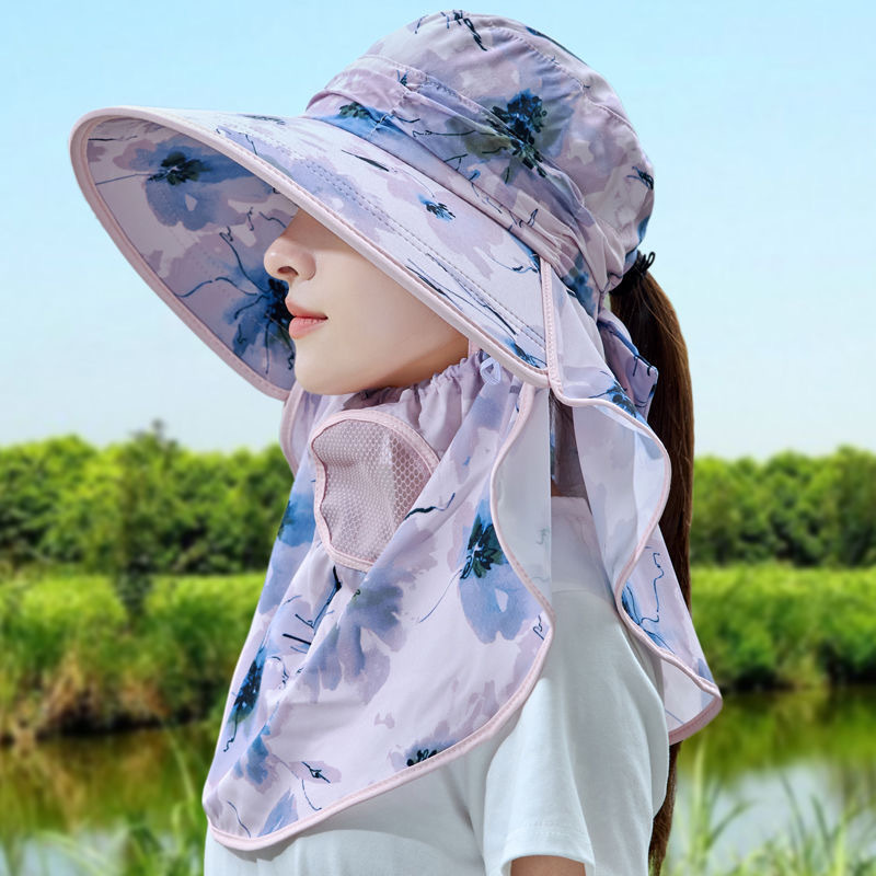 여름 얼굴 덮기 차 따기 모자 새로운 유행 올 매치 태양 보호 태양 모자 얼굴 덮기 목 보호 UV 보호 태양 모자