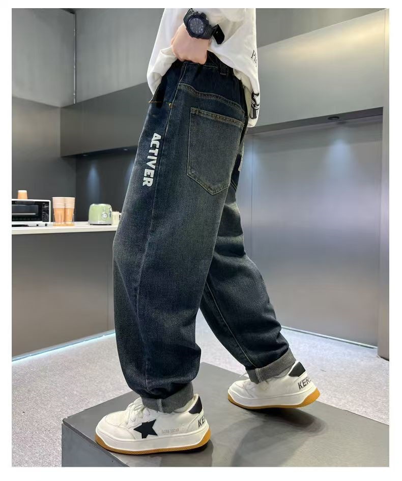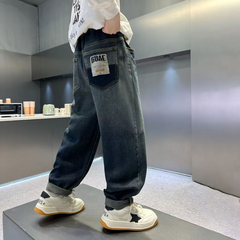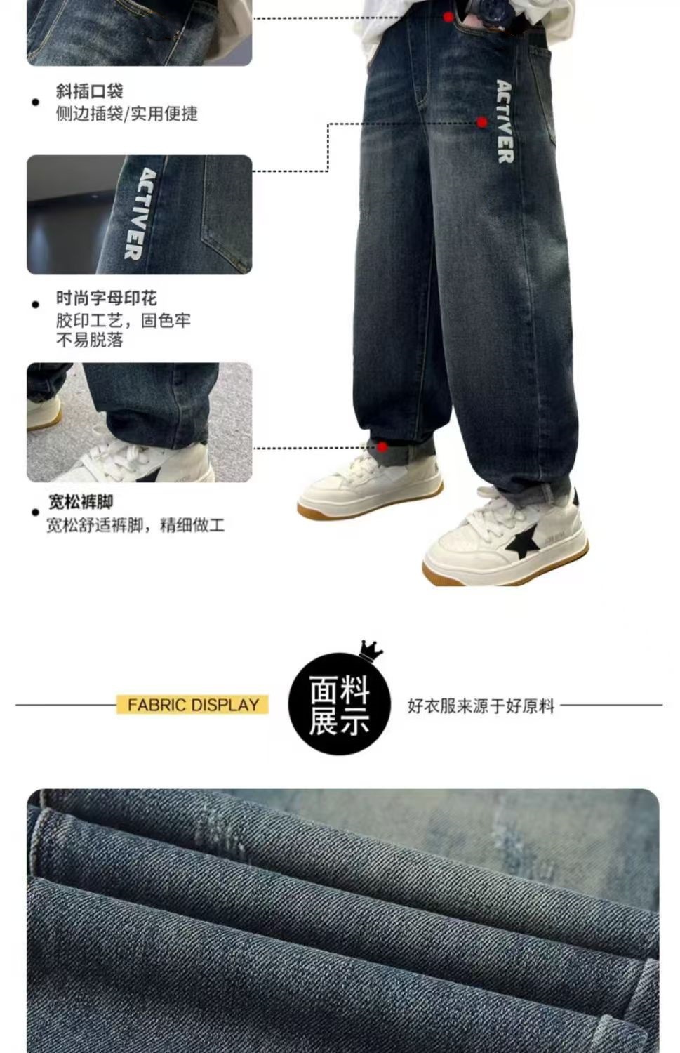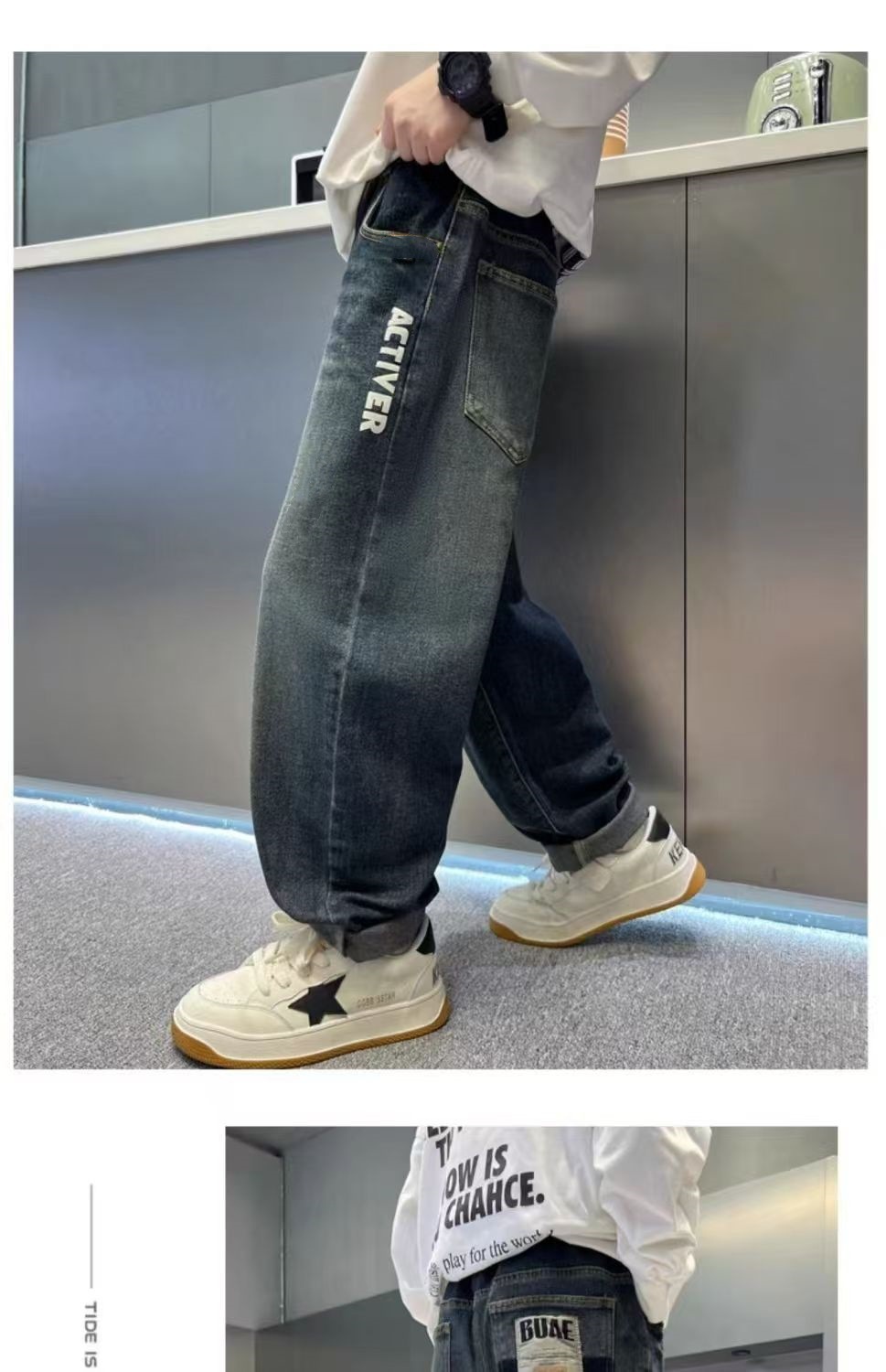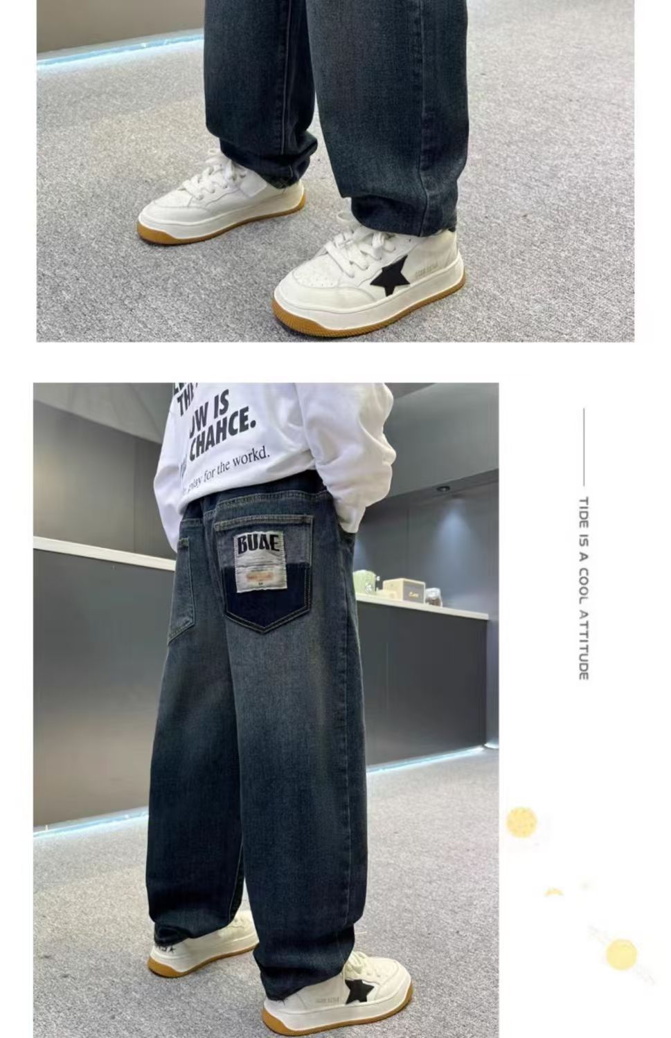 아동복 소년 가을 바지 2025 새로운 스타일 중대형 아동 멋진 청바지 봄, 가을 소년 가을 바지스토어 가기