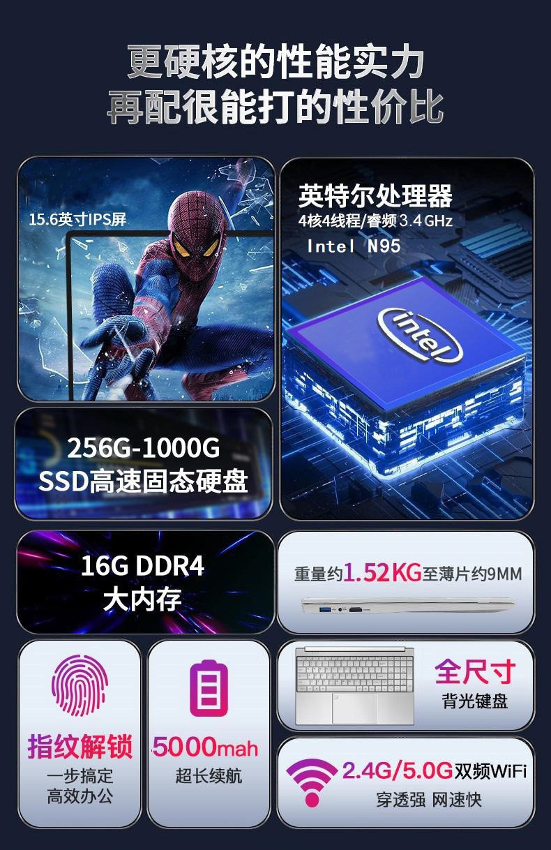 • 딥 스페이스 그레이 15.6inch HD 스크린 Intel 12세대 N5095ACPU 쿼드 코어 4스레드