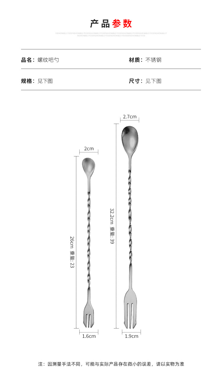 304 스테인레스 스틸 롱 핸들 바 스푼 아이스 스푼 이중 목적 혼합 스푼 포크 롱 핸들 칵테일 혼합 스푼 혼합 스푼