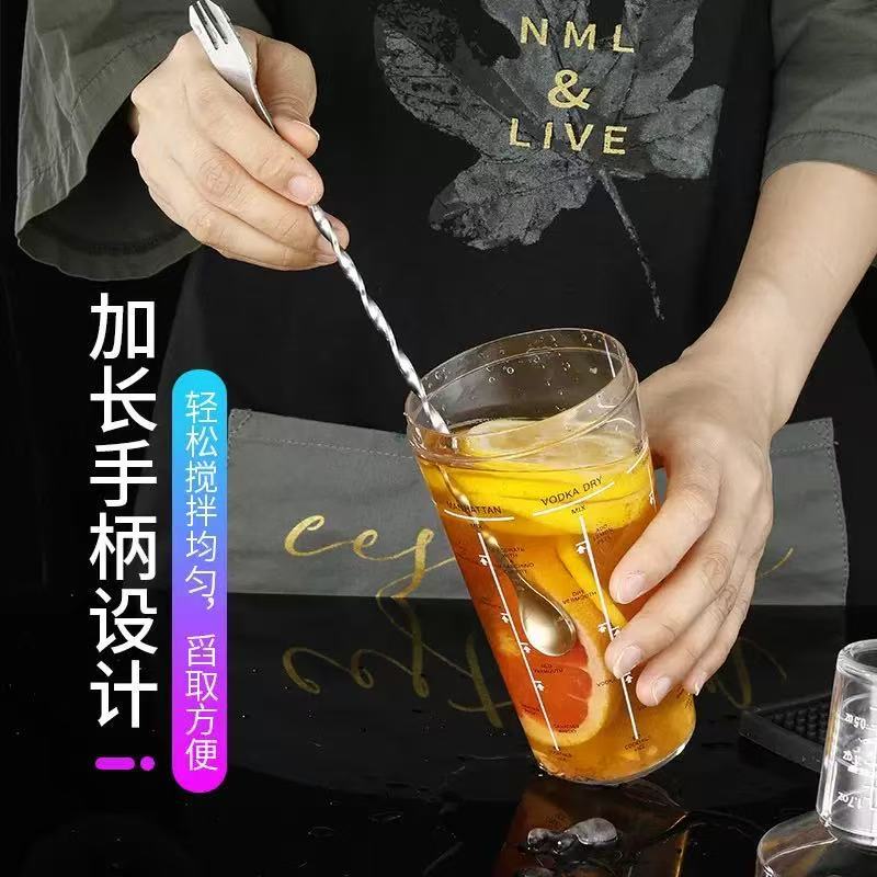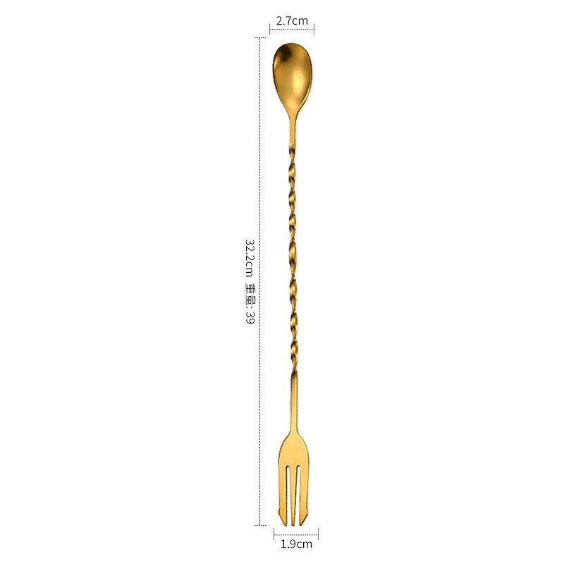 304 스테인레스 스틸 롱 핸들 바 스푼 아이스 스푼 이중 목적 혼합 스푼 포크 롱 핸들 칵테일 혼합 스푼 혼합 스푼스토어 가기