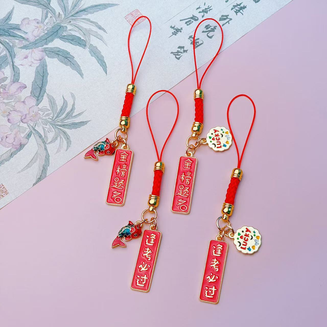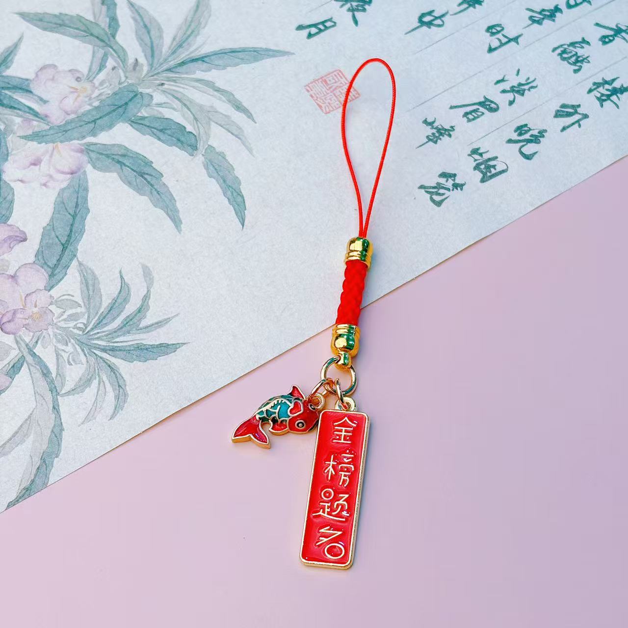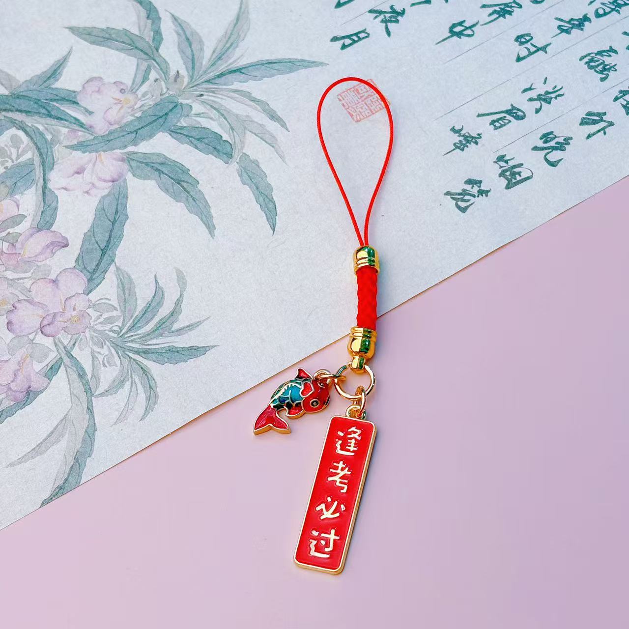 중국 스타일의 빨간 밧줄 행운을 빕니다 잉어는 1 번 u-디스크 끈 학교 가방 펜던트 학생 선물을 통과해야합니다.