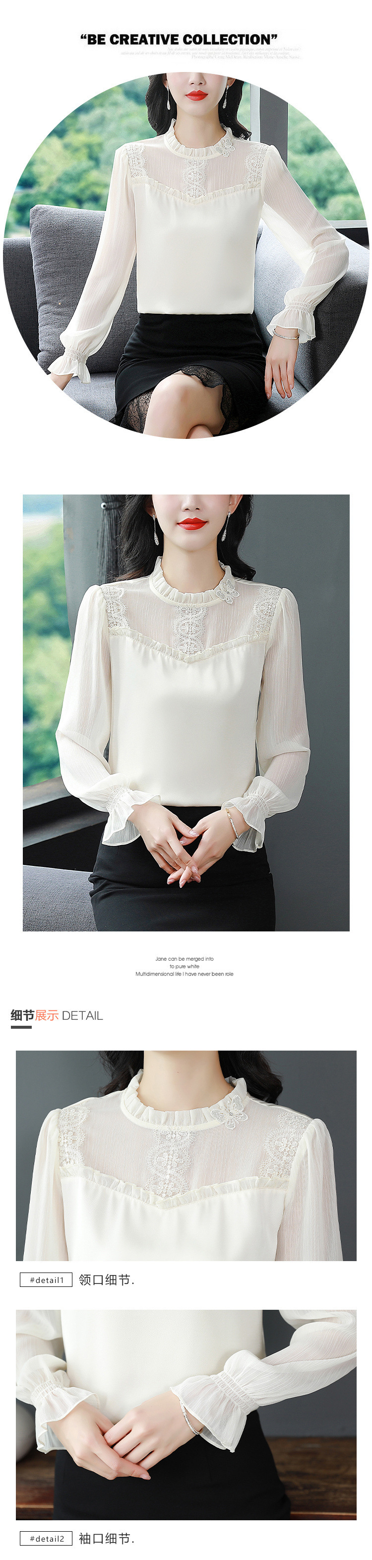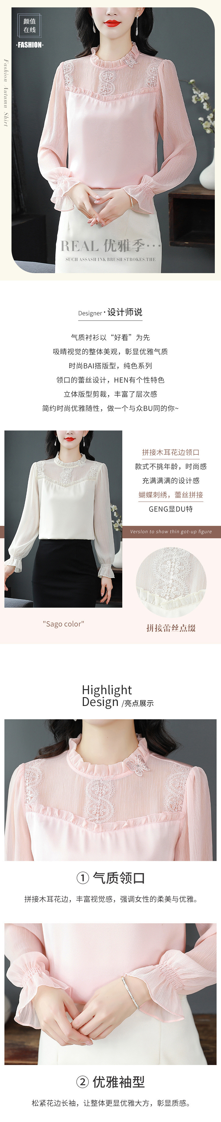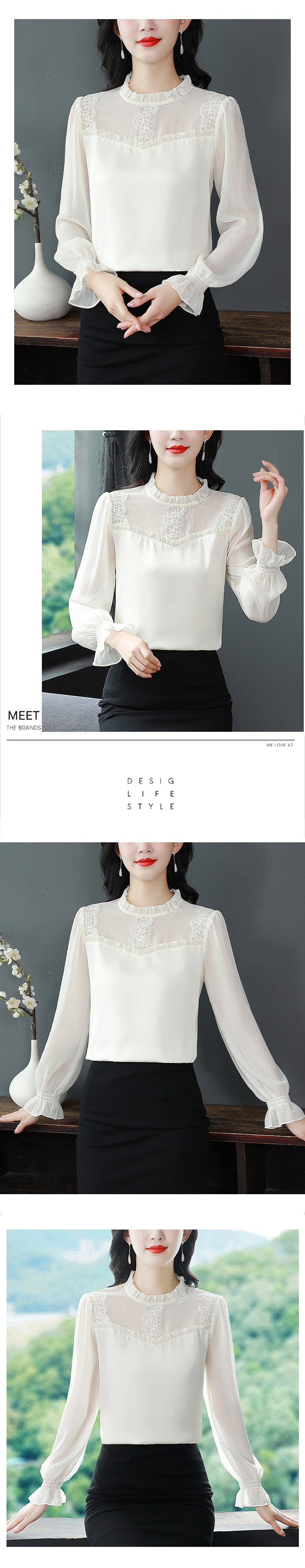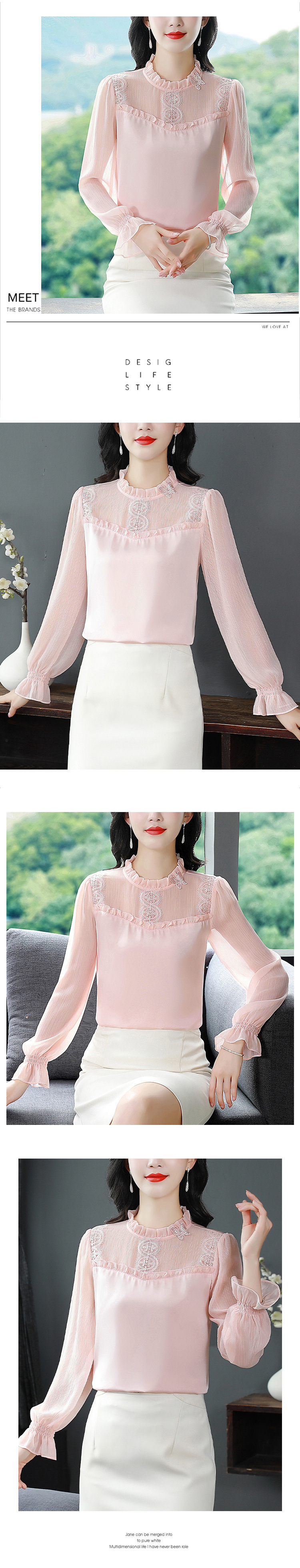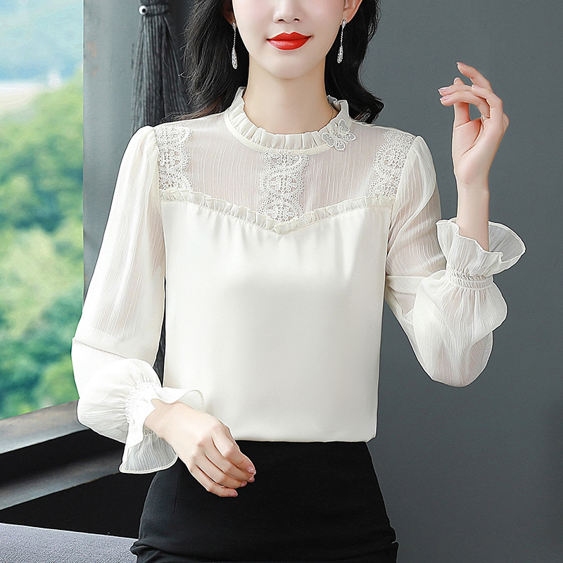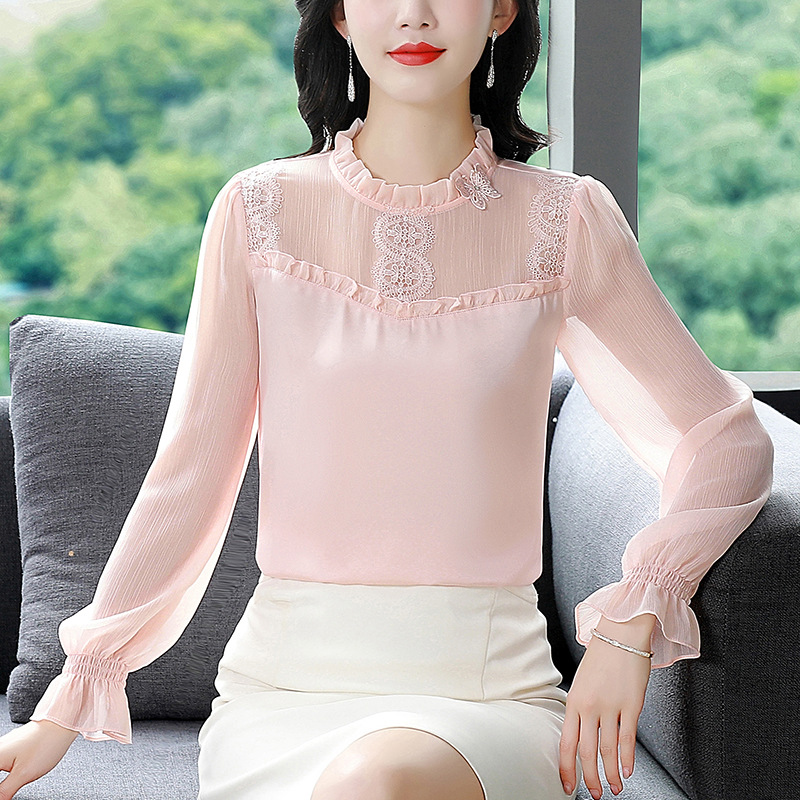 2025 봄 새로운 스타일 슬림 스탠드 칼라 쉬폰 셔츠 여성용 대형 루즈 연령 감소 긴팔 다용도 탑스토어 가기