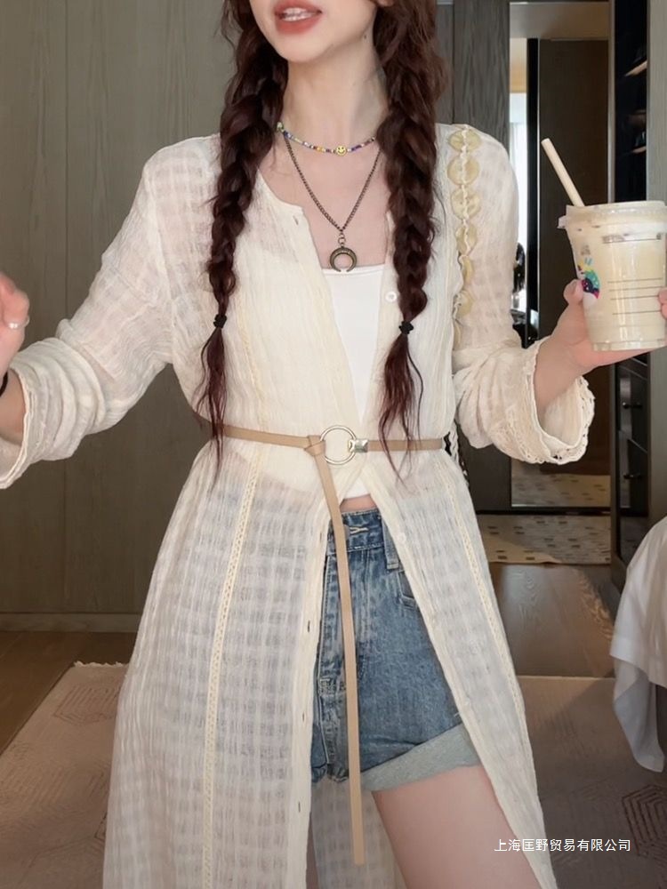2025 새로운 해변 휴가 스타일 드레스 레이스 아우터 가디건 긴 블라우스 자외선 차단 의류스토어 가기