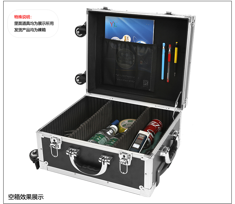 대형 범용 휠이 있는 풀로드 도구 상자, 알루미늄 합금 상자, 악기, 사진 장비, 문 및 창 샘플 조명 디스플레이 보관스토어 가기