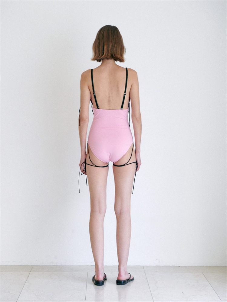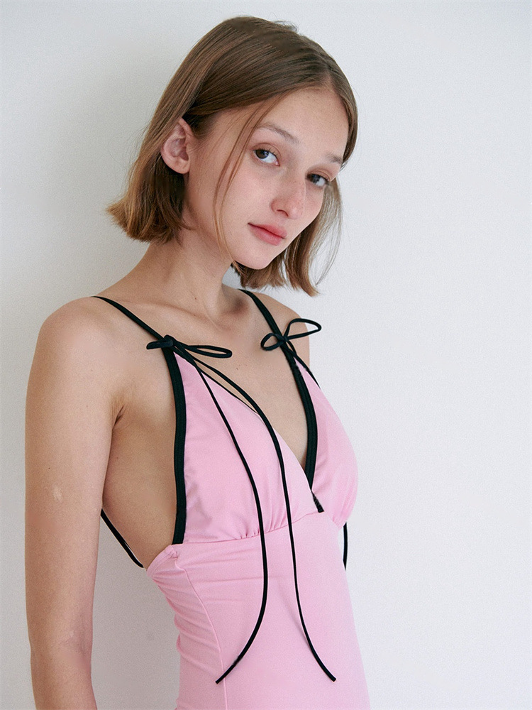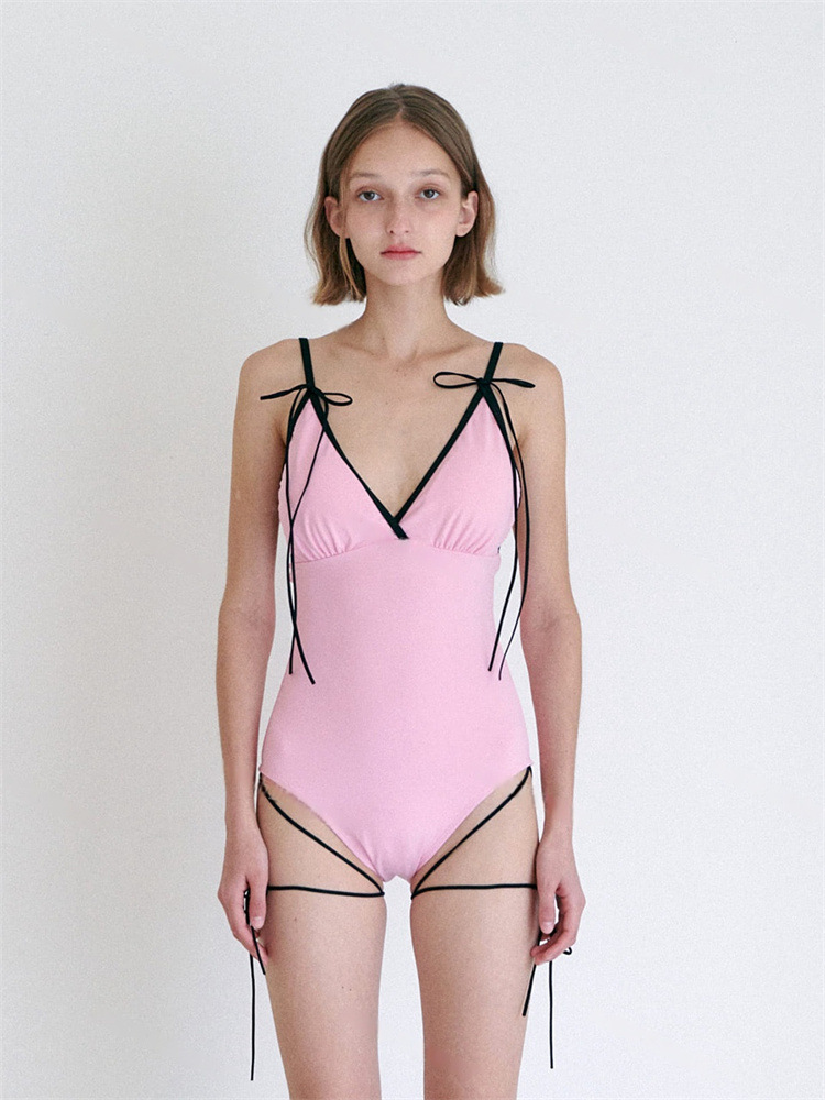 수영복 비키니 슬리밍 배 커버 수영복 대비 색상 리본 수영복 여성용 하이 엔드 스트랩 작은 가슴 수영복스토어 가기
