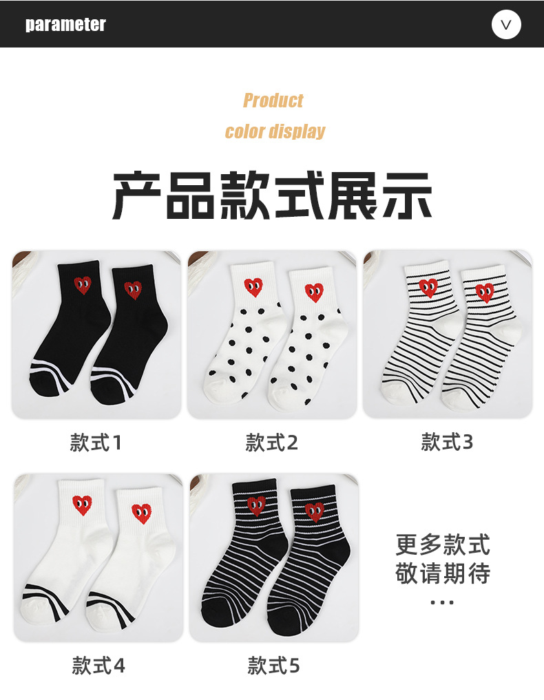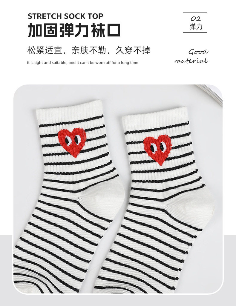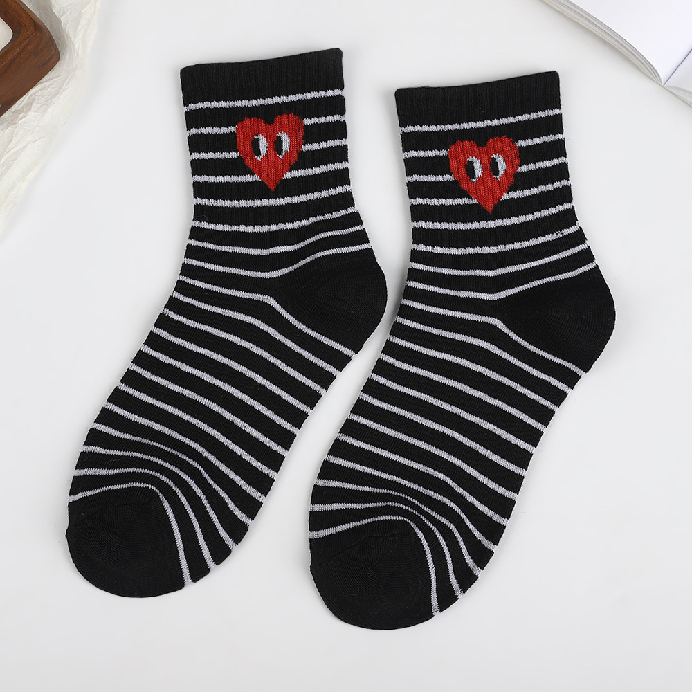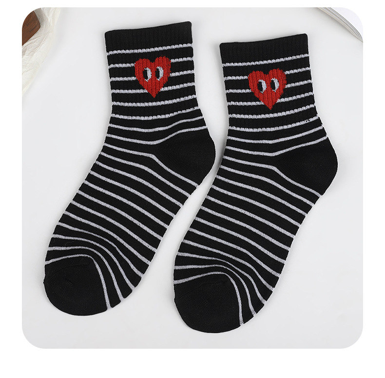 여성용 양말 한국식 종아리 중간 봄 여름 러브 양말 귀여운 일본식 다용도 학생 트렌드 블랙 화이트 스트라이프