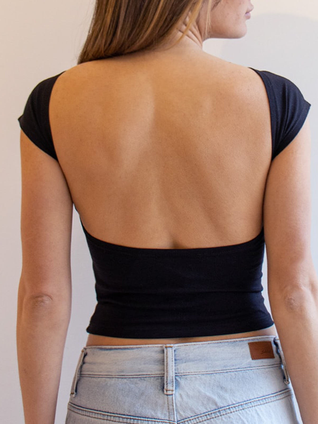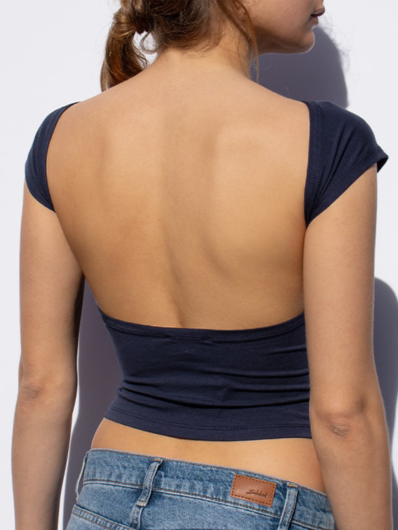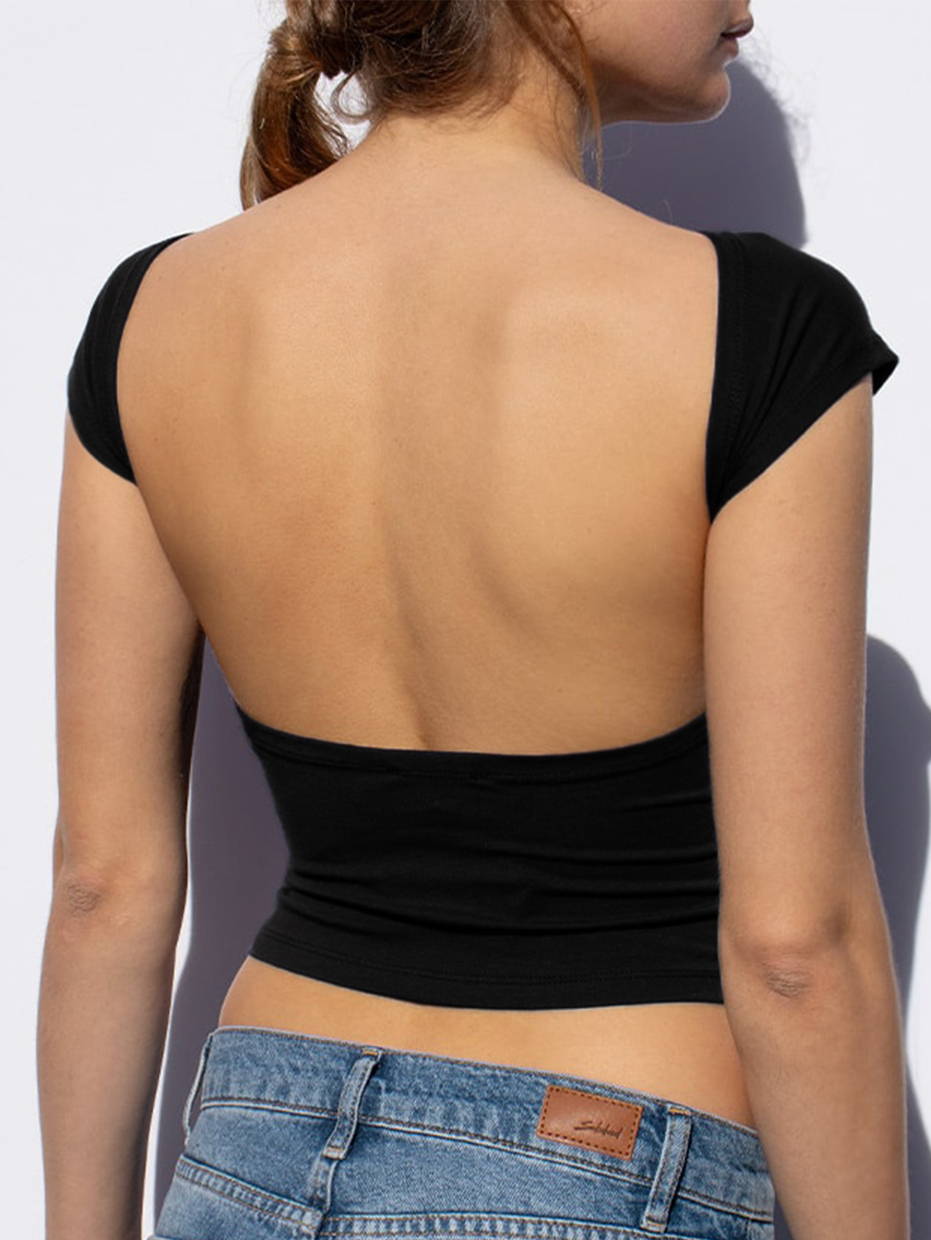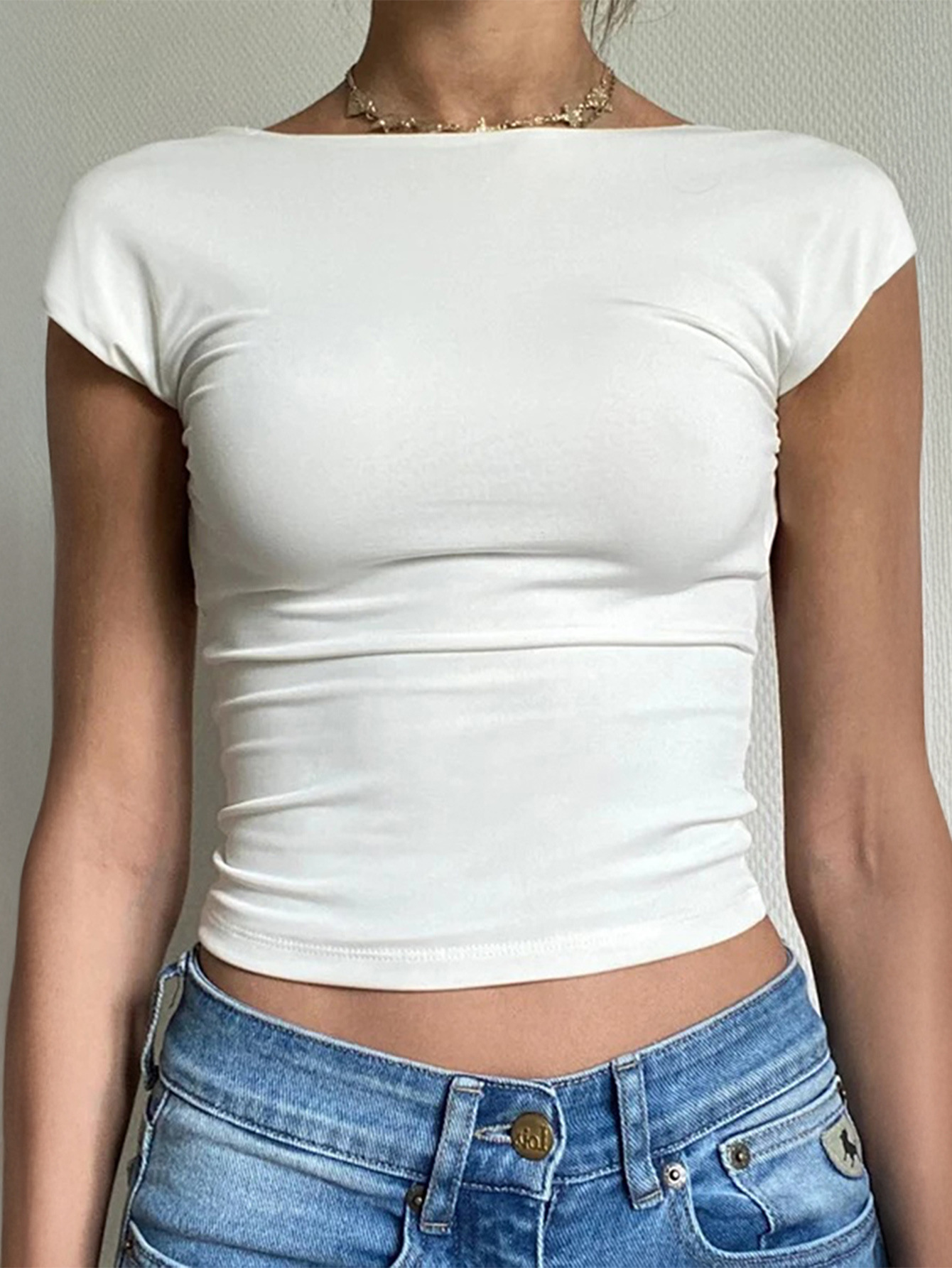 Diyun 2025 봄과 여름 아마존 유럽과 미국 Y2K 섹시한 스파이스 걸스 빈 불없는 단색 탑 짧은 소매 여성용 티셔츠